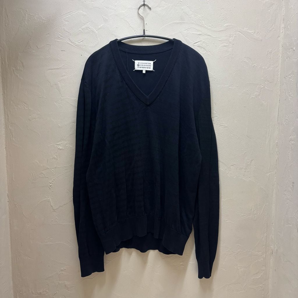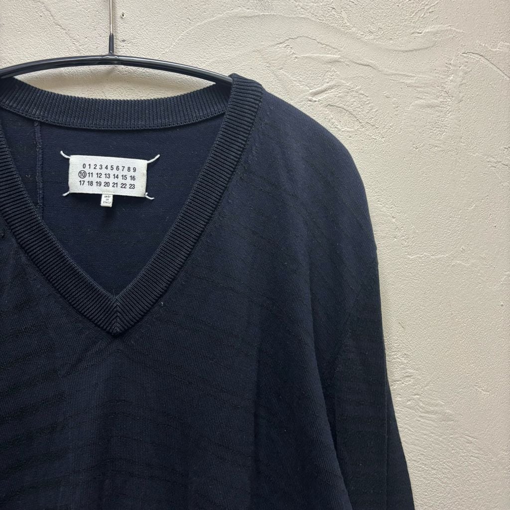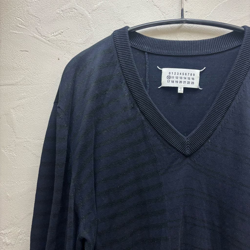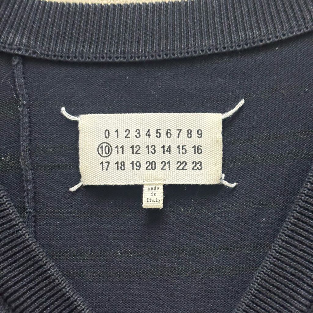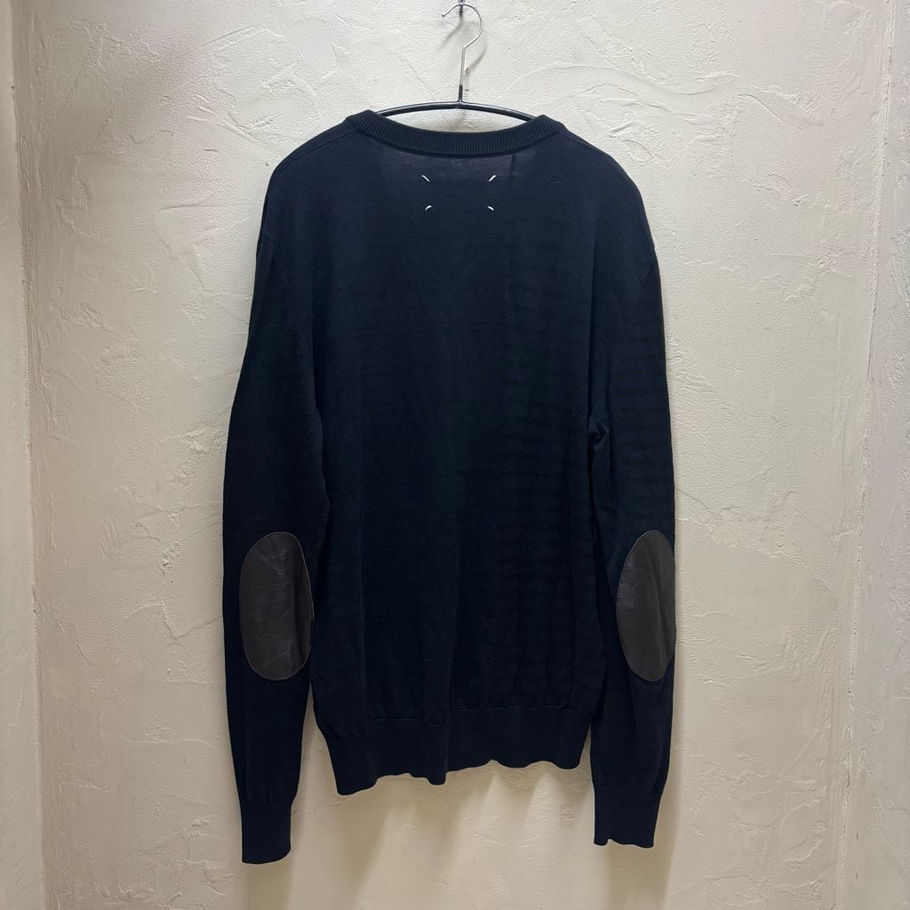 Maison Martin Margiela メゾンマルタンマルジェラ 15SS Elbow Patch Border Sweater ニット セーター S30HA0796 S15233 ブラック ネイビー size:XXL【代官山B02】