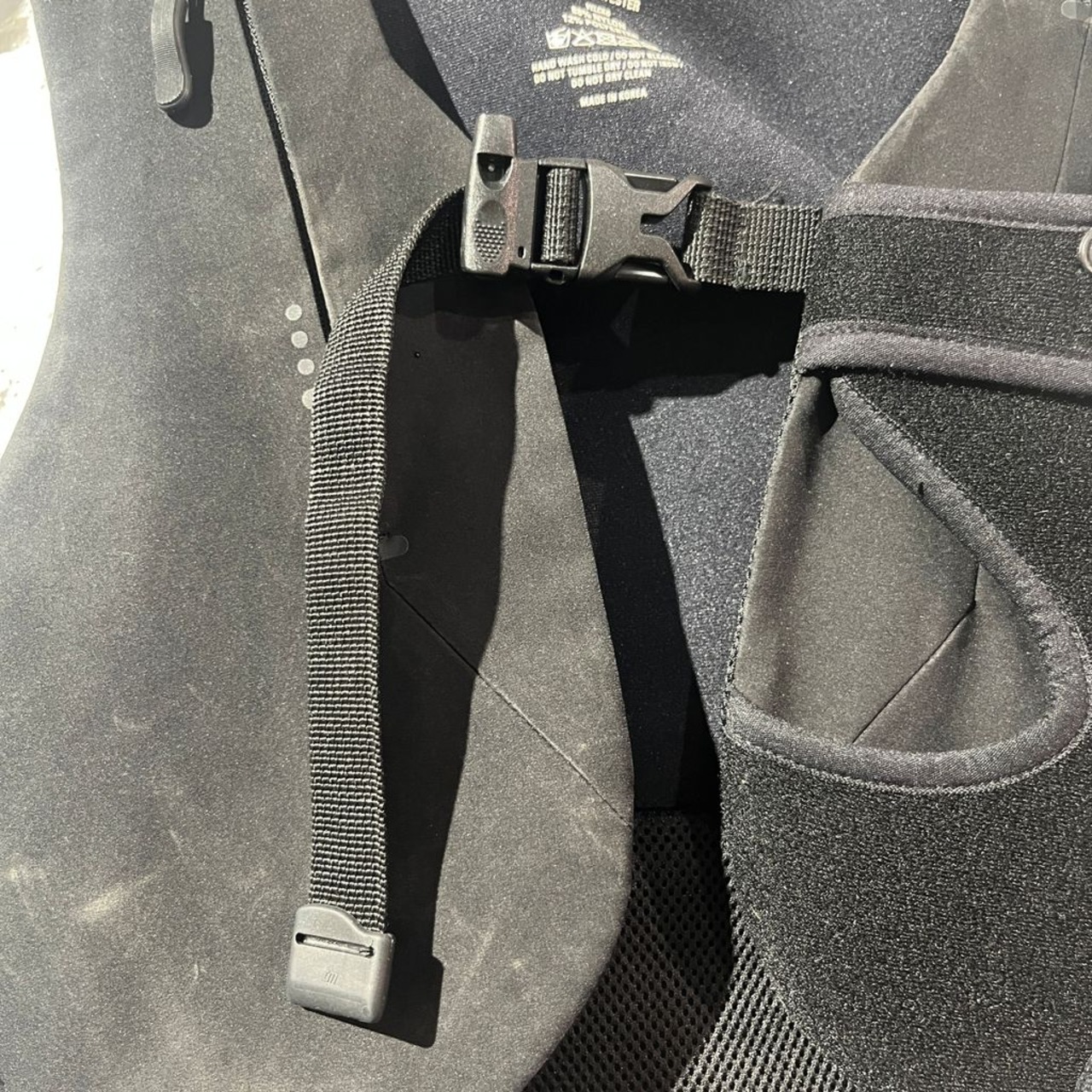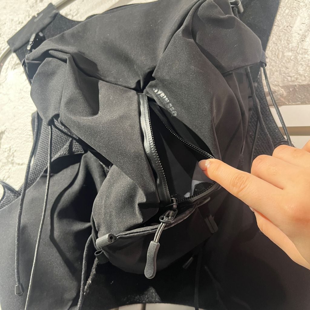両サイドの肩部分にポケットがあり、バックポーチは取り外し可能です。ウエスト部分もマジックテープで調整出来ます。