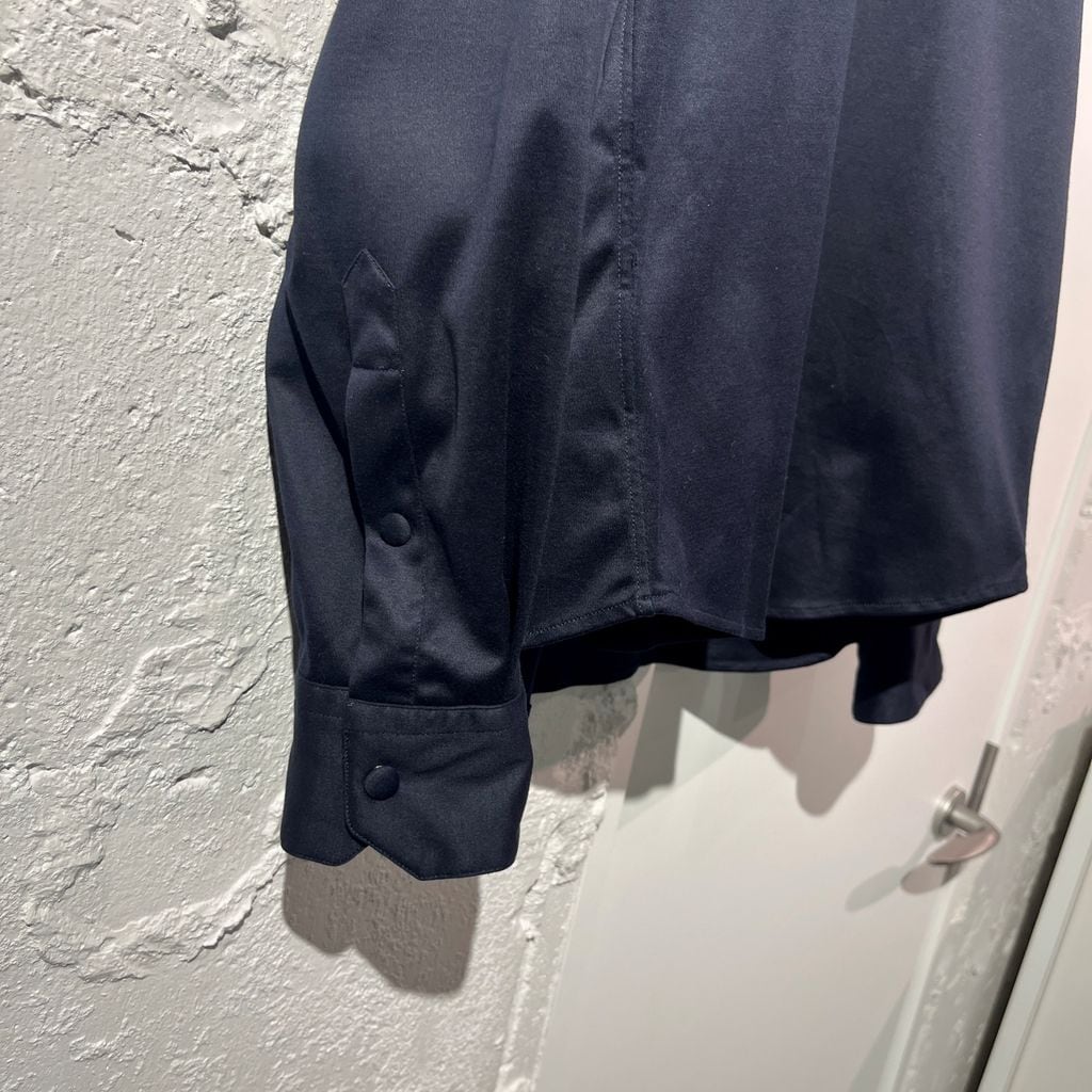 少し光沢がある生地で、シャツのようなデザイン。ダブルジップかつ、比翼つきで上品な印象になります。