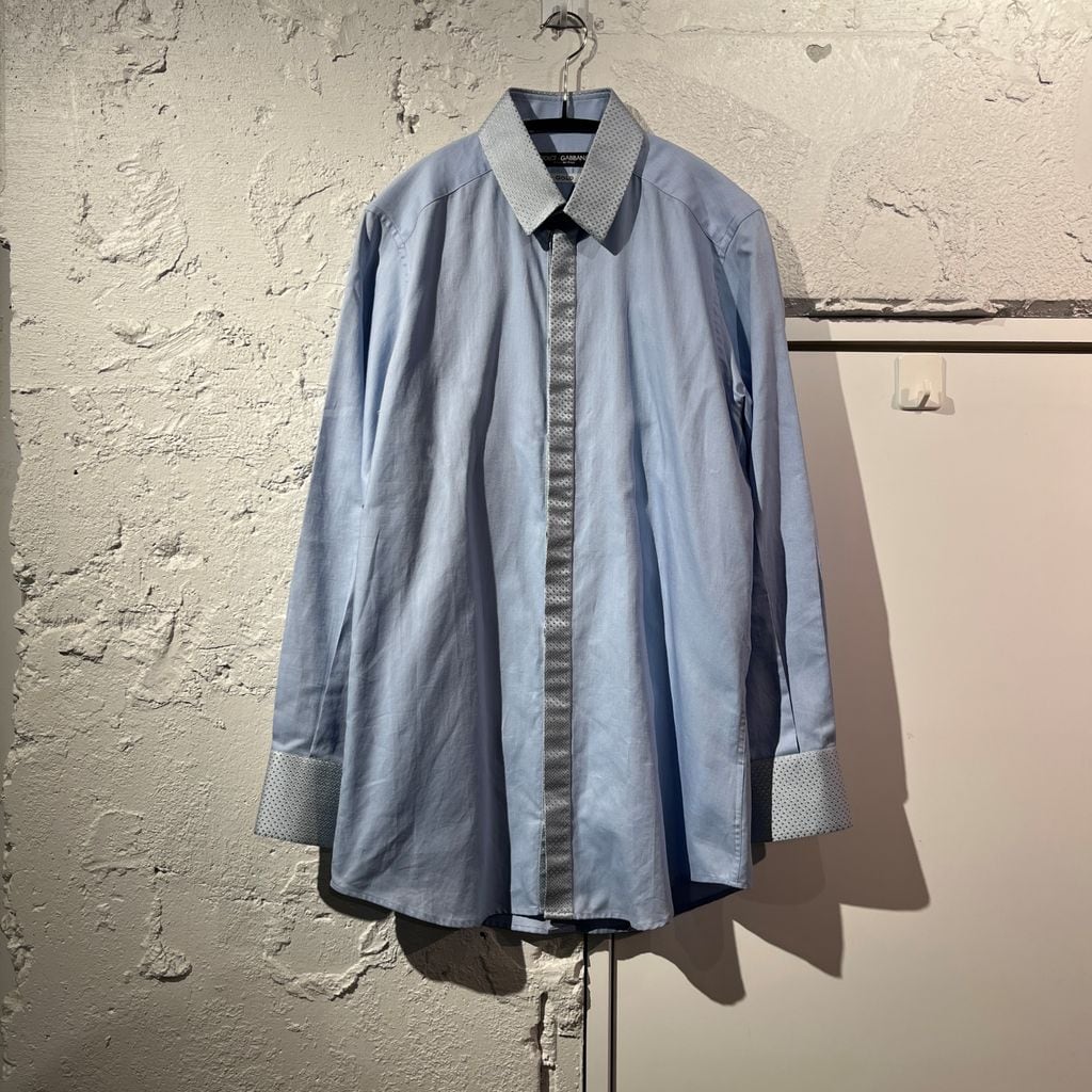 DOLCE & GABBANA ドルチェ & ガッバーナ Silk Front Shirt シルク混シャツ ライトブルー size:38【表参道B02】