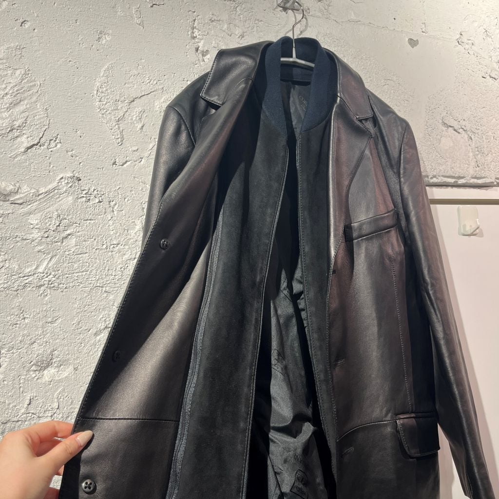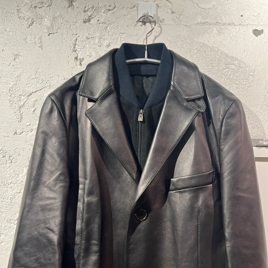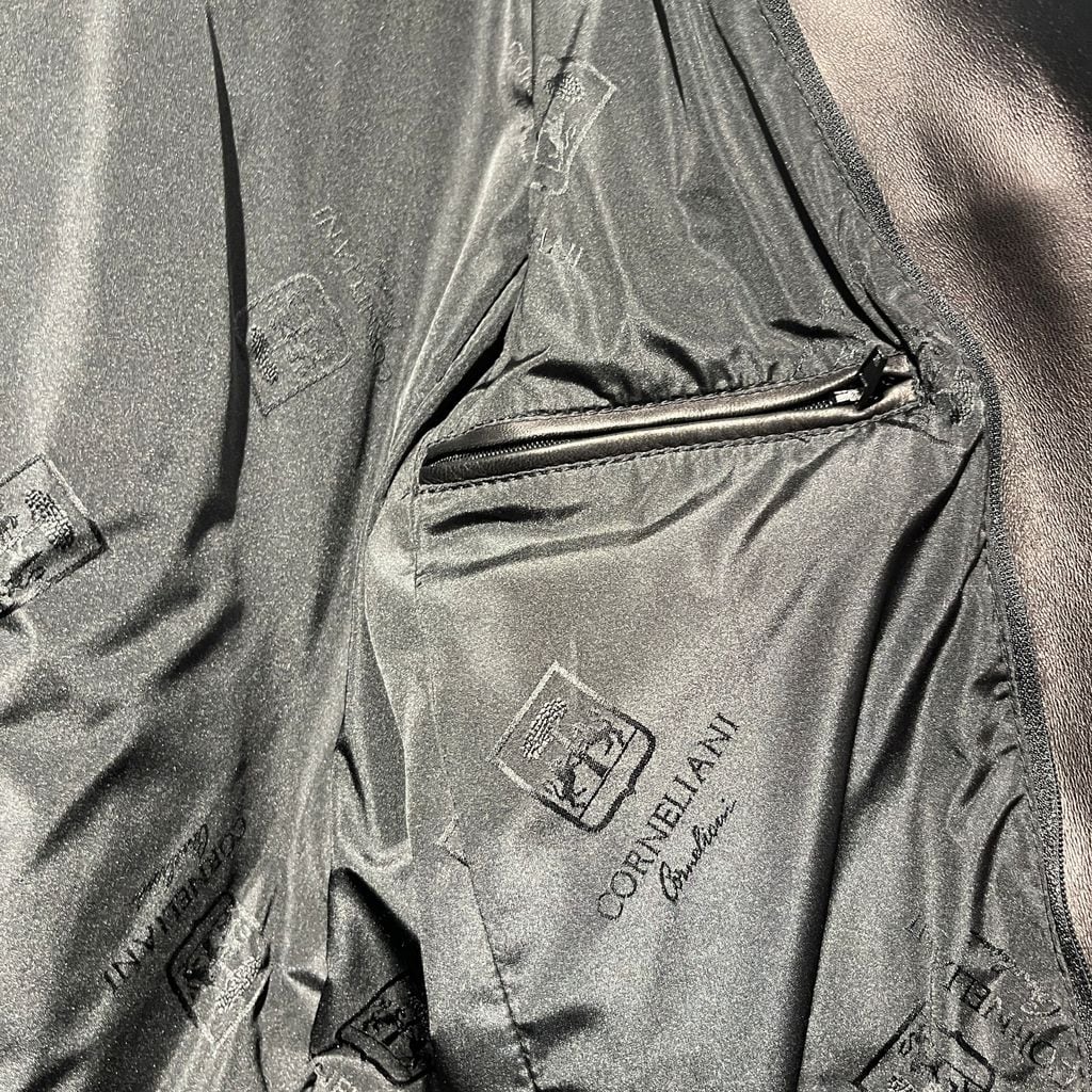CORNELIANI コルネリアー二 Layered Zip Leather Jacket レザージャケット ブラック size:44【表参道B02】