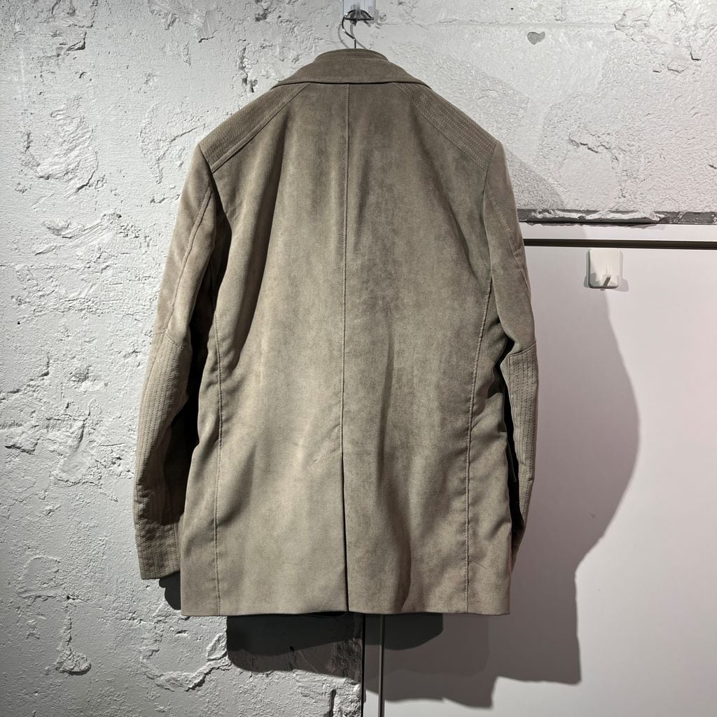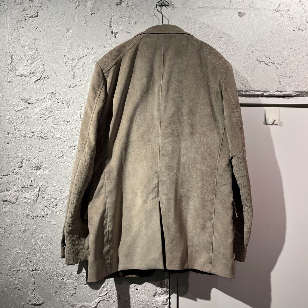ジャケットの内側にノーカラーアウターの前身頃が付いているデザイン。内側部分はジップですべて取り外し可能なのでジャケットとしても着て頂けます。