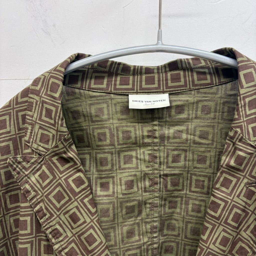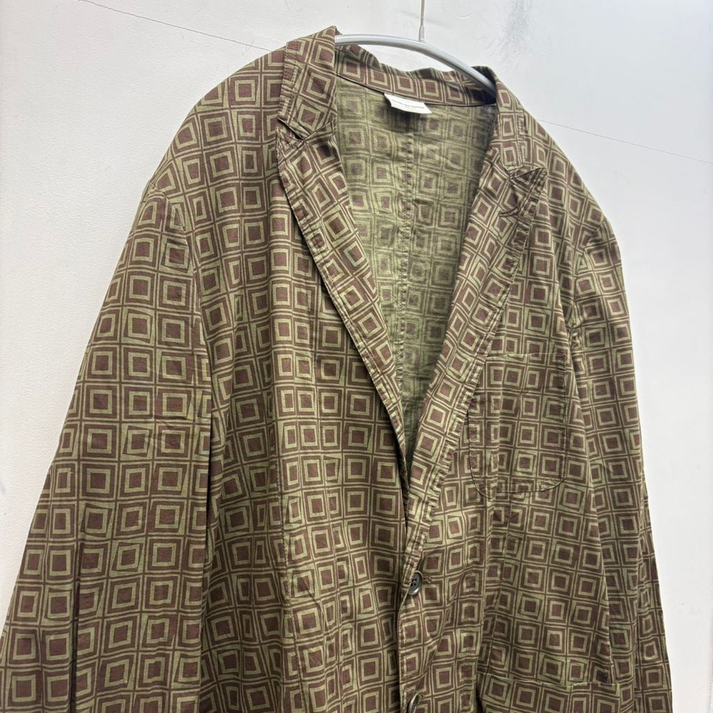 Dries Van Noten ドリスヴァンノッテン Geometric Square Pattern Jacket テーラードジャケット グリーン系 size:54【中目黒B02】