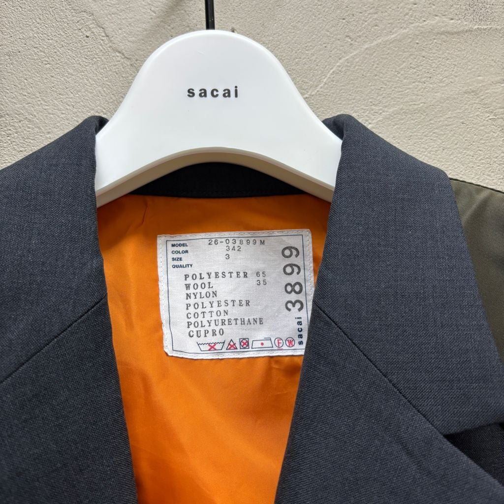 sacai サカイ 26SS Suiting x Nylon Twill Jacket ドッキングテーラードジャケット 26-03899M グレー カーキ size:3【代官山B02】