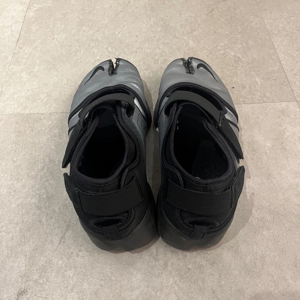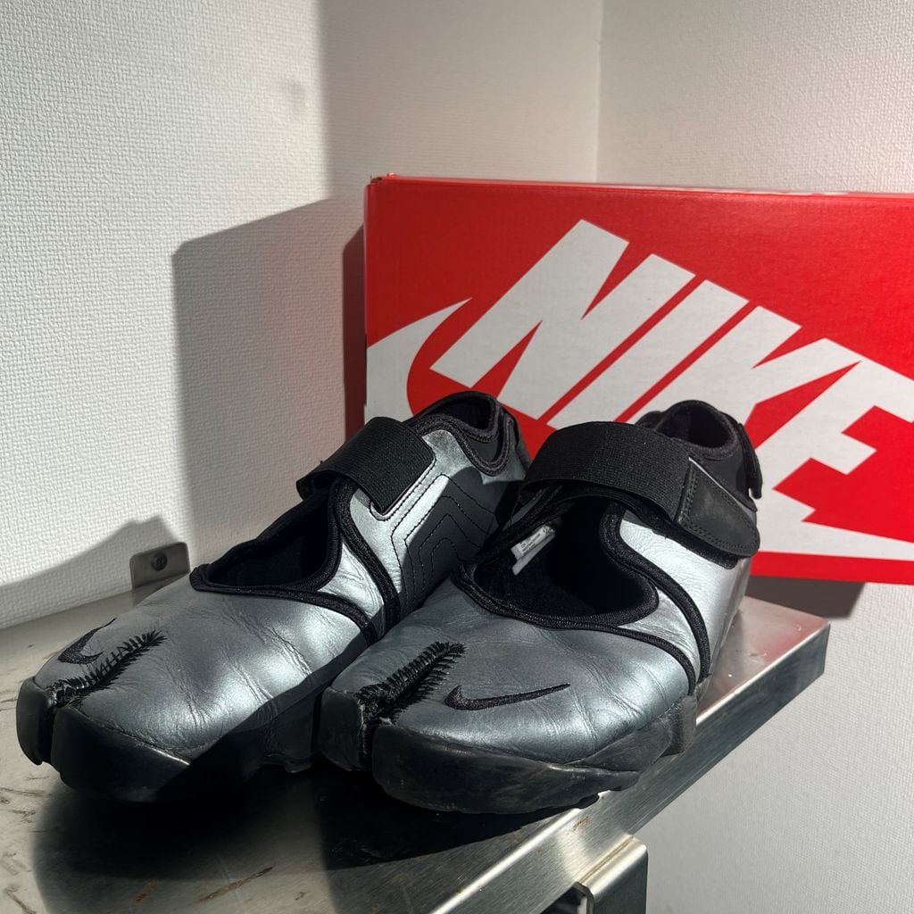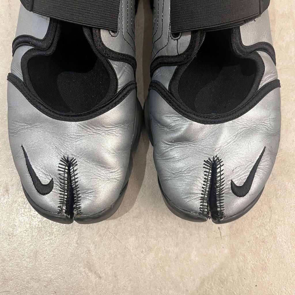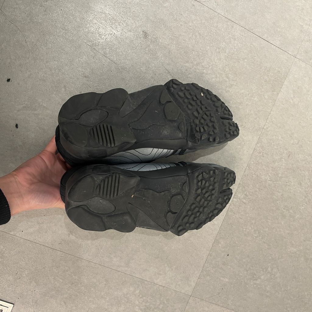 甲部分から踵にかけてシルバーからブラックのグラデーションになっているデザインが特徴的。革が柔らかく歩きやすいアイテムです。
