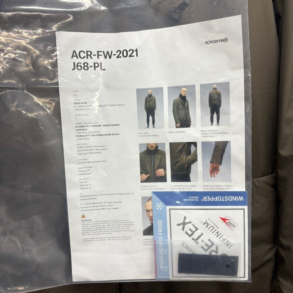 ACRONYM アクロニウム 21AW 2L Gore-Tex Infinium™ Windstopper® Rider Jacket パテッドジャケット J68-PL カーキ size:S 【中目黒B02】