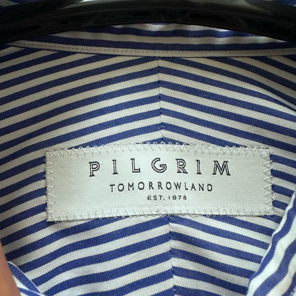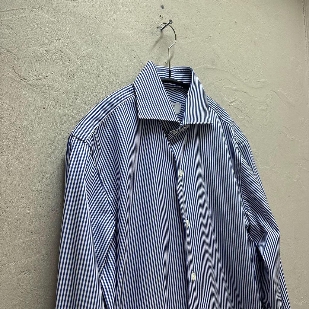 PILGRIM ピルグリム STRIPE SHIRT 長袖シャツ ブルー size:37【代官山B02】