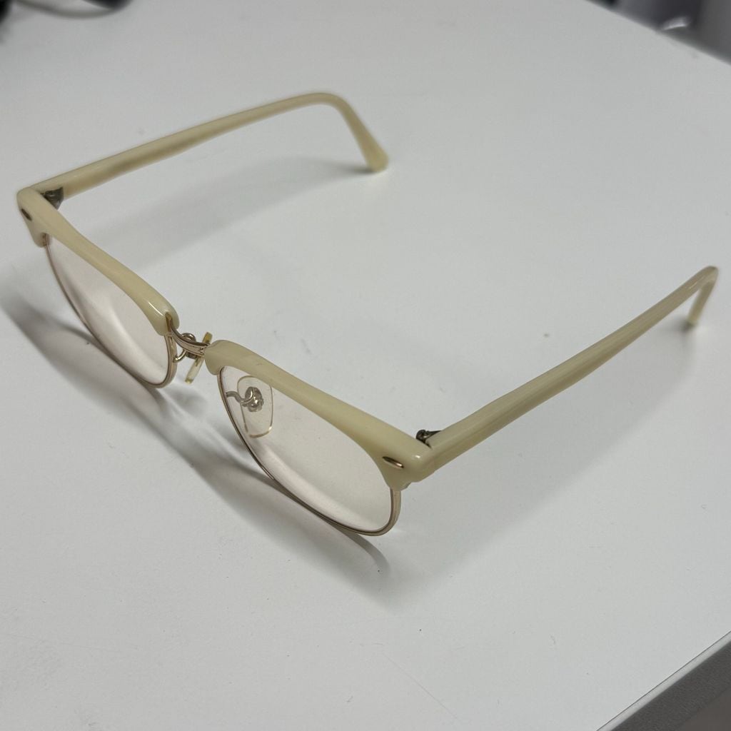 ホワイト系のサーモントフレームのアイウェアです。