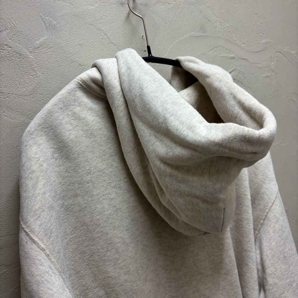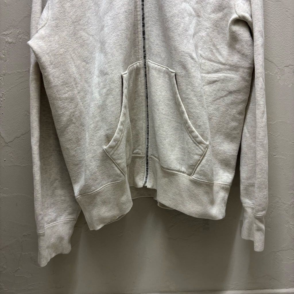 ジップアップ型のフーディーで柔らかい素材のアイテムです。