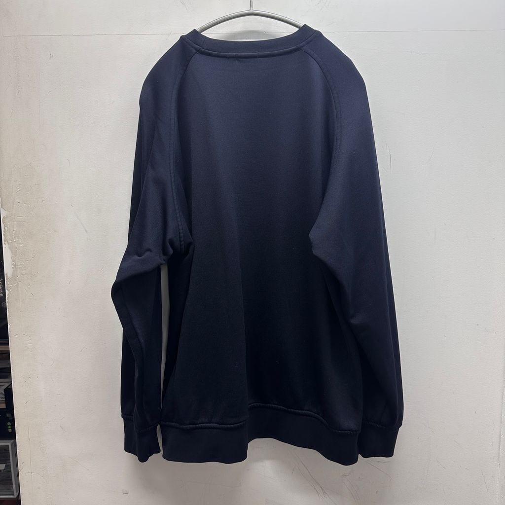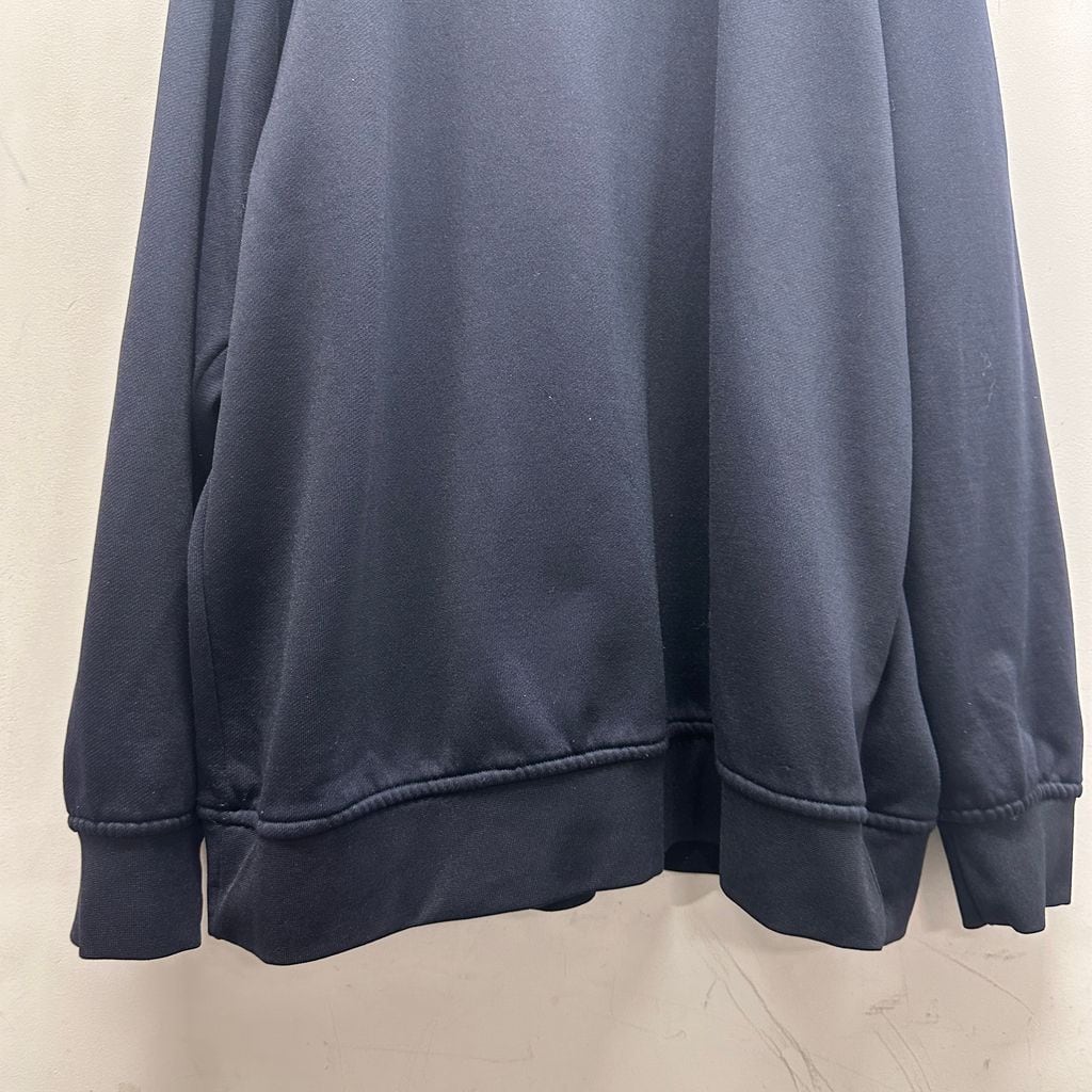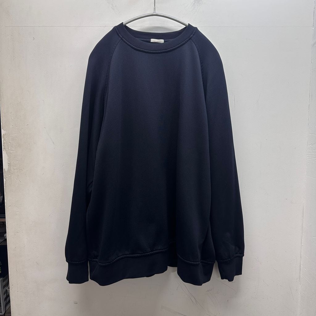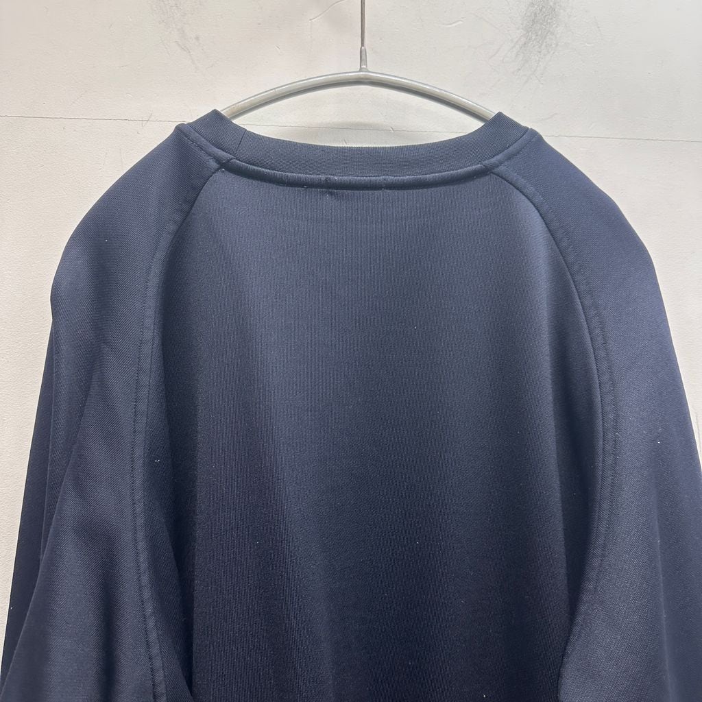 表がナイロン、裏がコットン裏毛の生地を使用した、ややルーズな丸首のスウェット型クルーネックです。