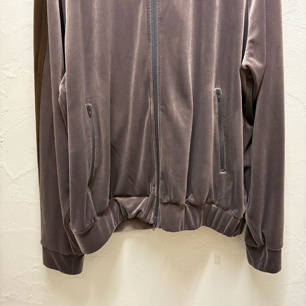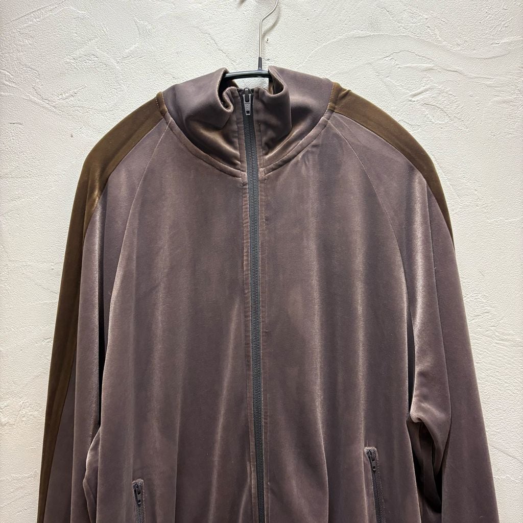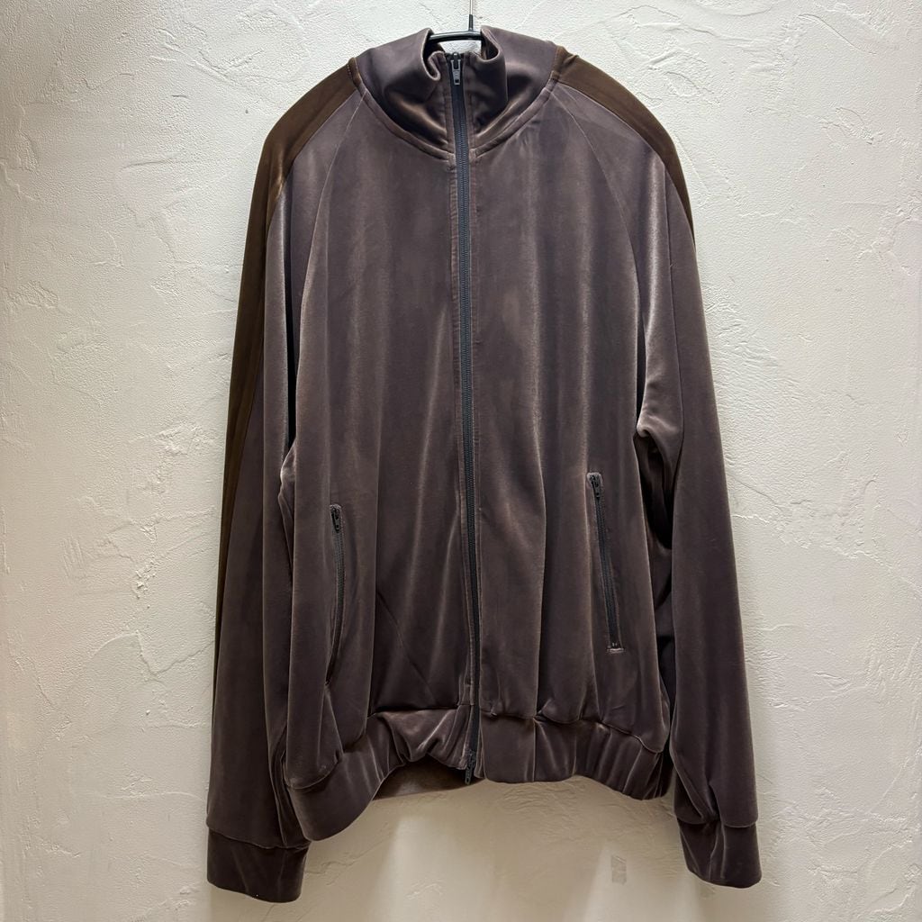 ベロア生地のトラックジャケットでダブルジップ仕様になっております。