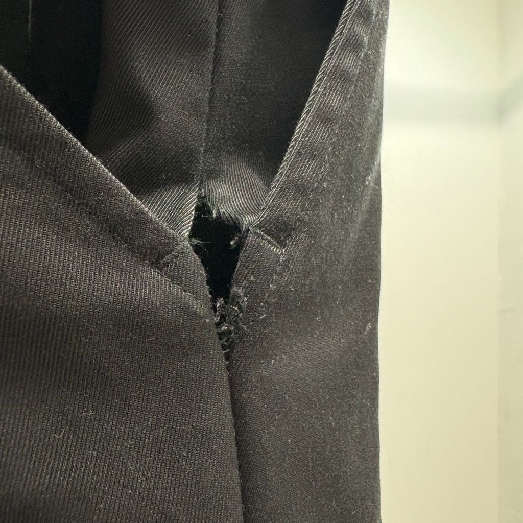 裾にダメージがあり、右ポケットに破れのある商品です。