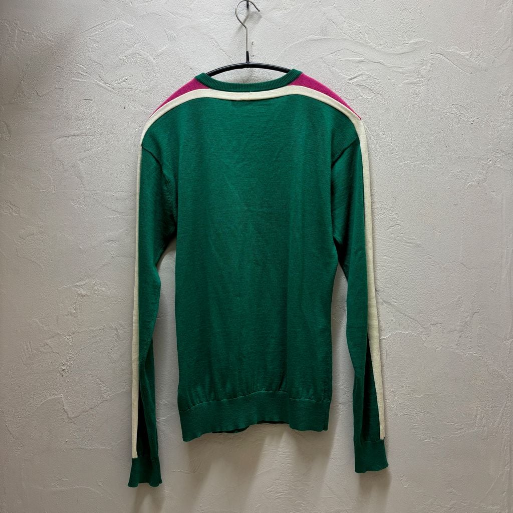 細身で袖のピンクとホワイトのラインが特徴的なアイテムです。