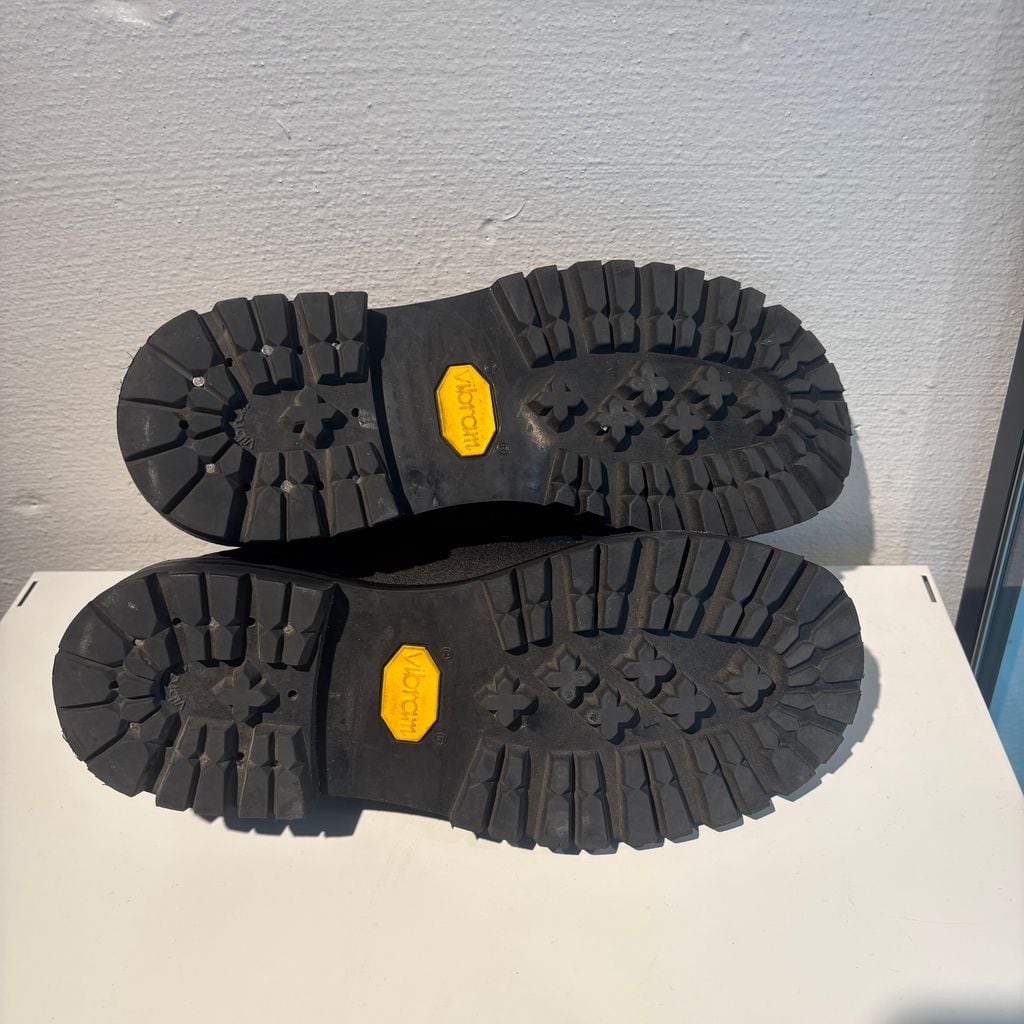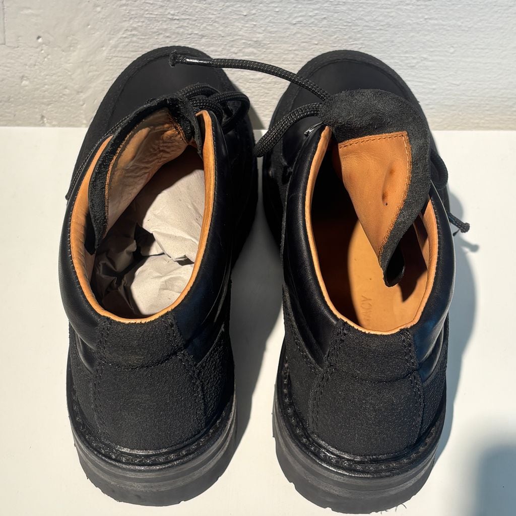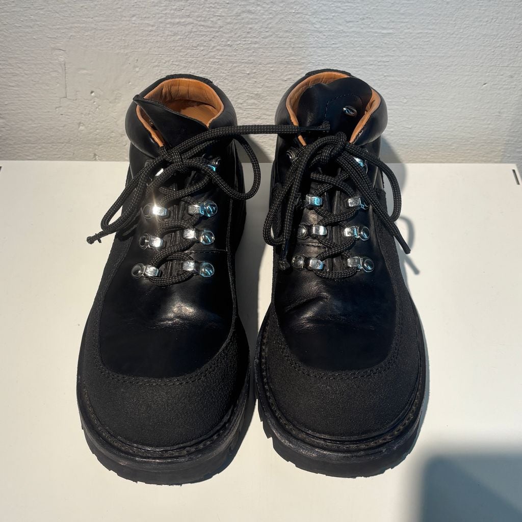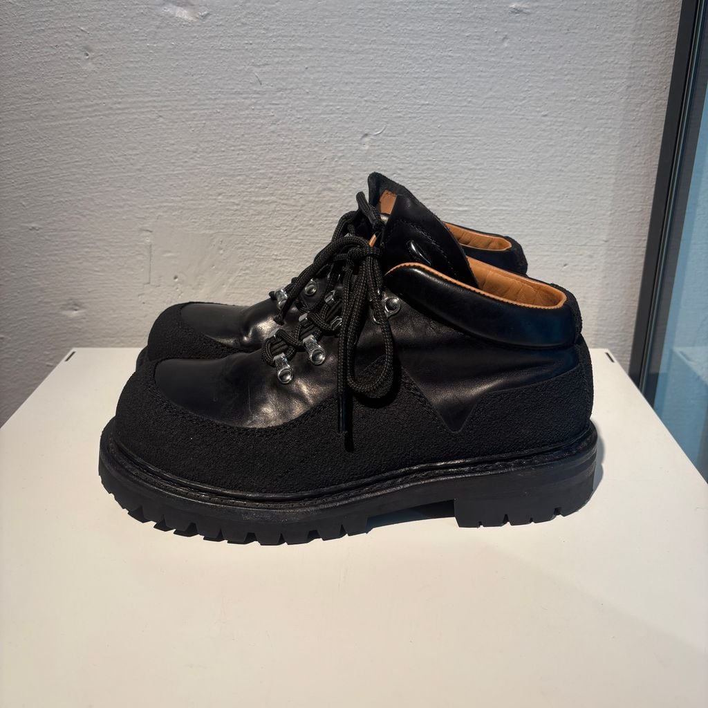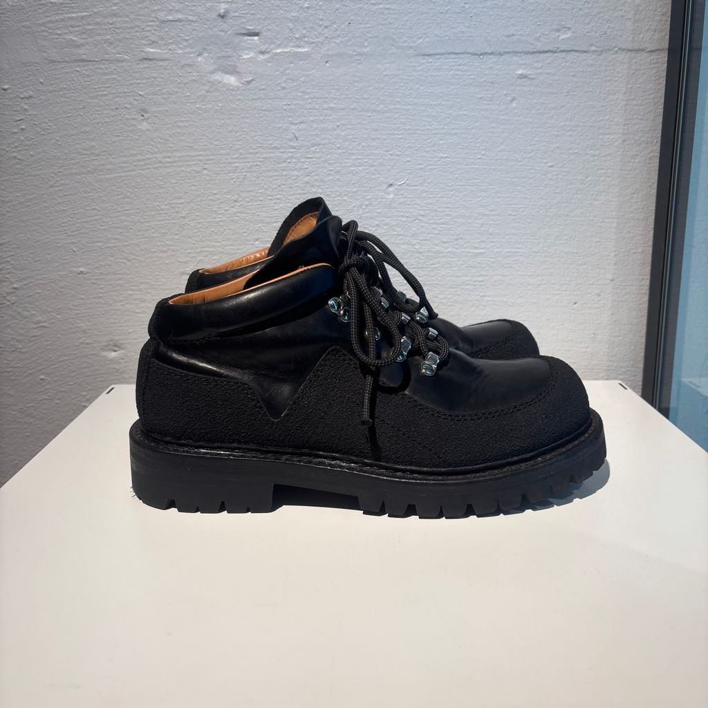 ハイキングブーツをベースにデザインされた、存在感のあるレザーシューズです。