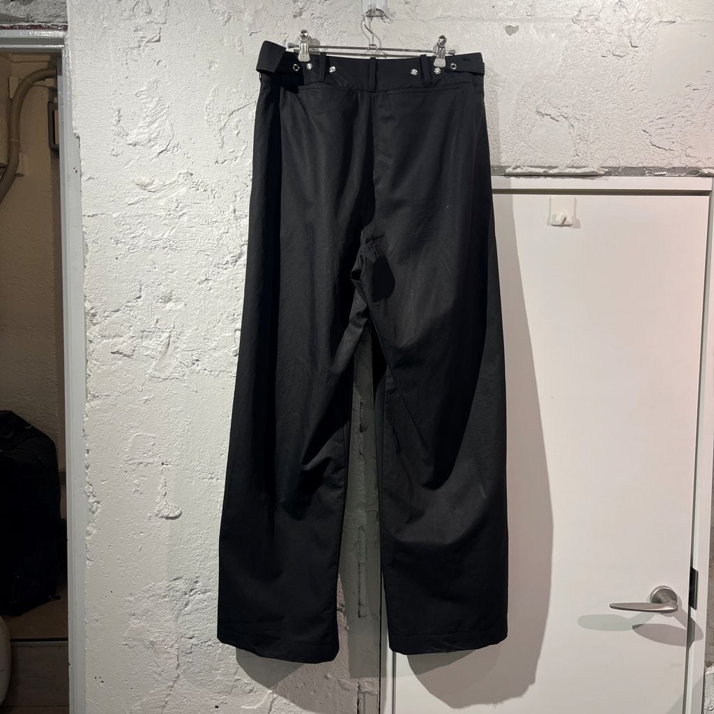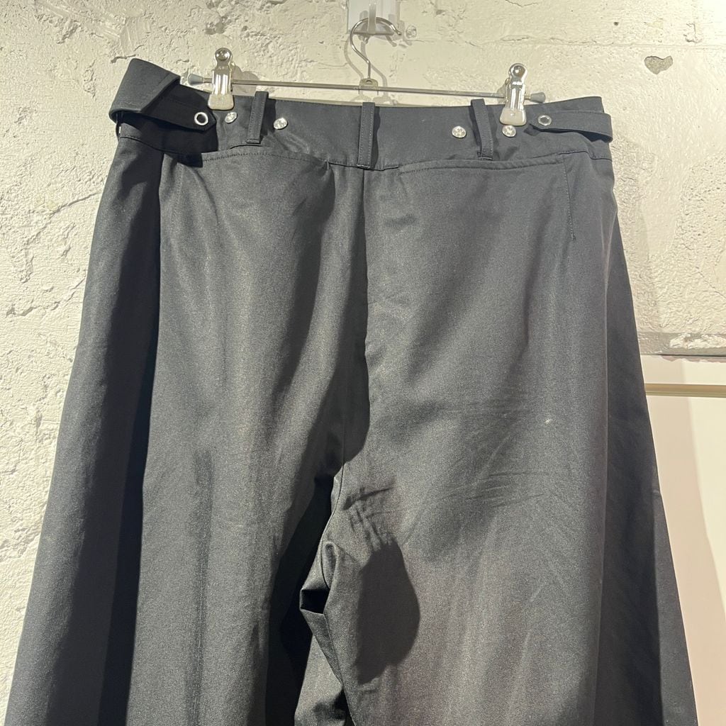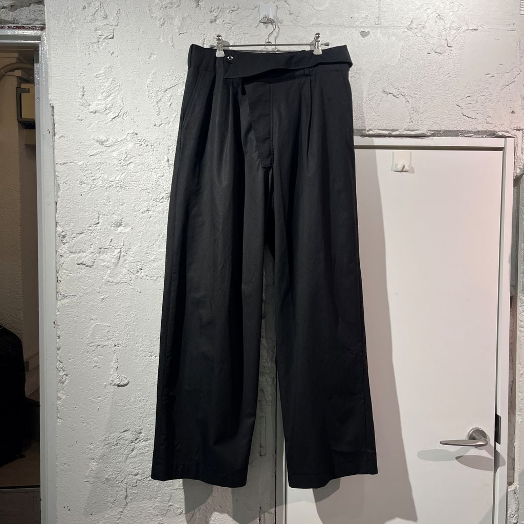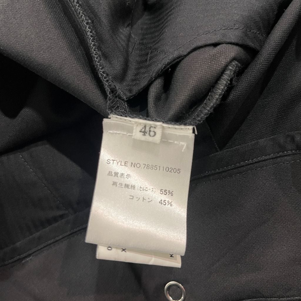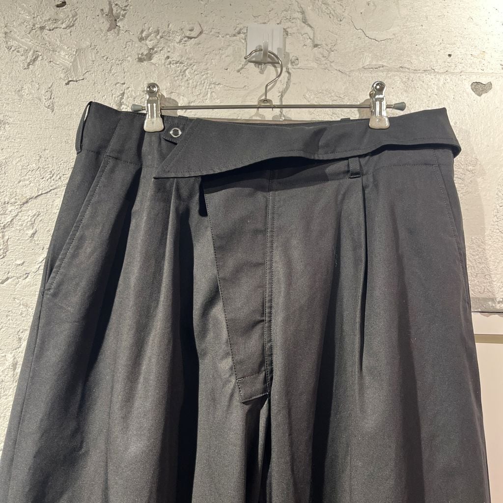 当ブランドらしくデザインの効いたアシンメトリーなフロントが特徴的なアイテムになります。プリーツが入っていて少しワイドなシルエットで着心地もよく着まわしやすい一着です。