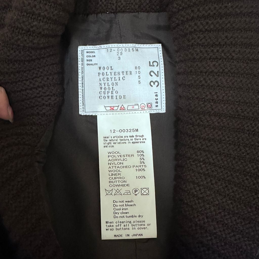 sacai サカイ 12AW Knit Docking Jacket テーラードジャケット 12-00325M ブラウン size:3【代官山B03】