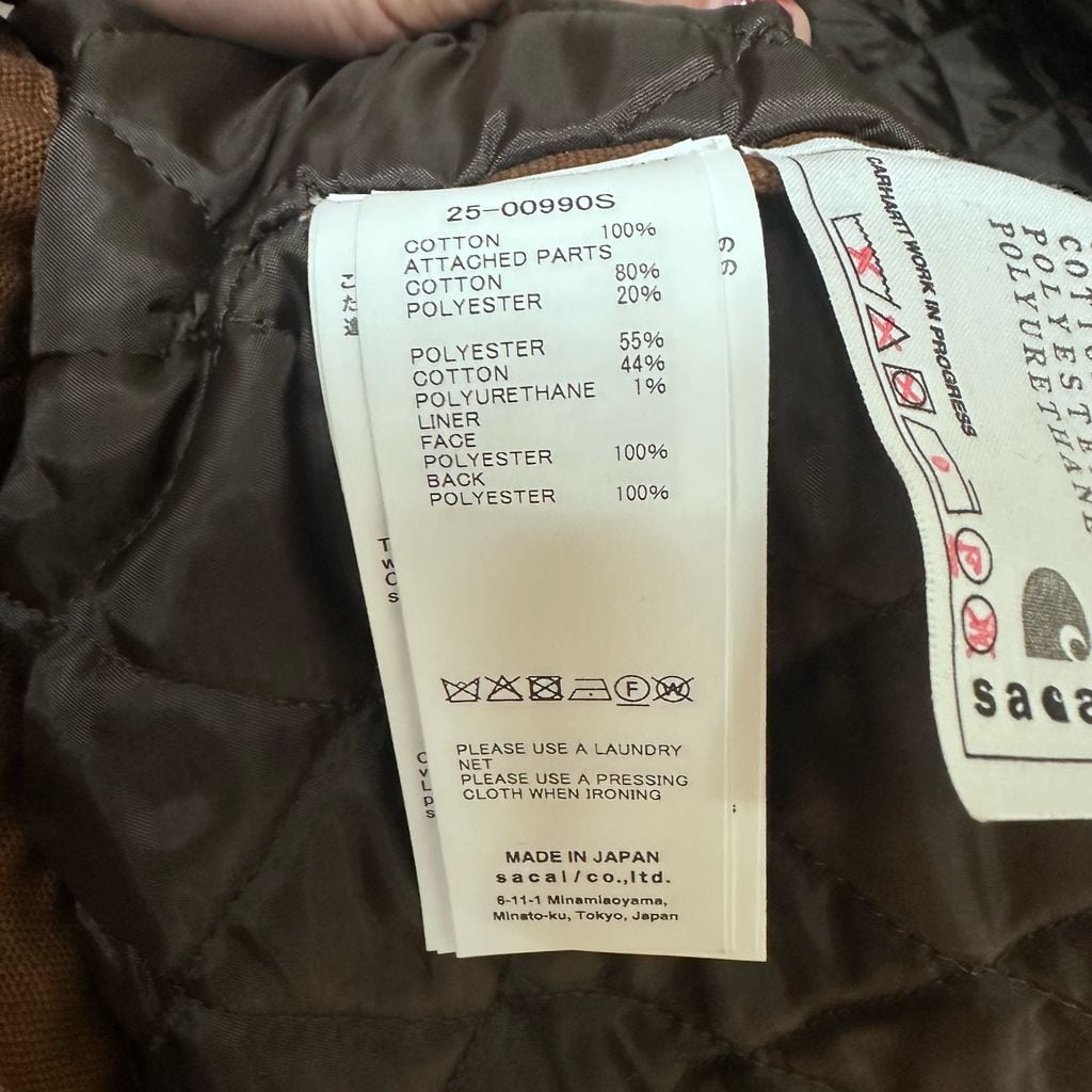sacai × Carhartt WIP サカイ×カーハート 25AW Duck Jacket ジャケット 25-00990S ブラウン size:2【代官山B03】