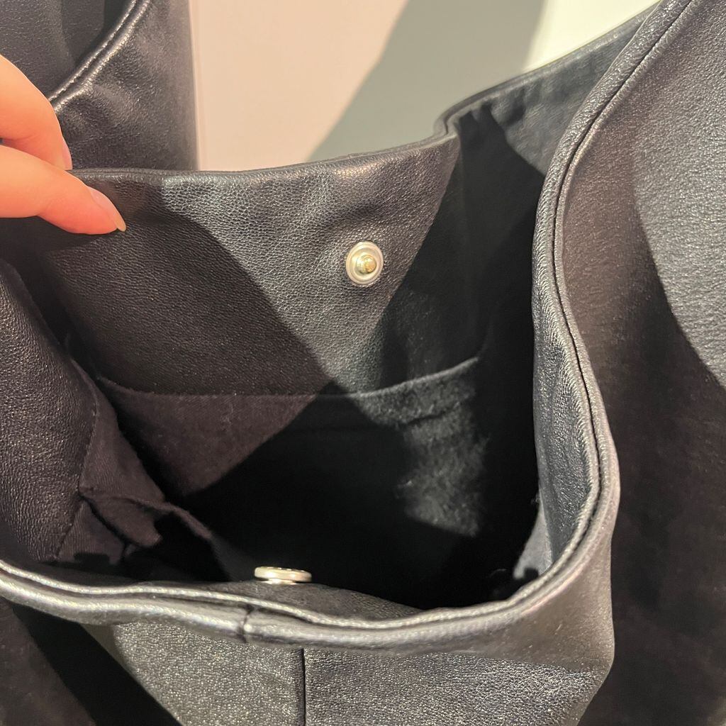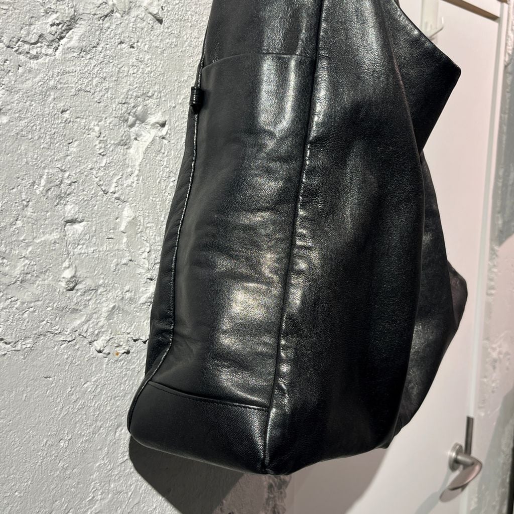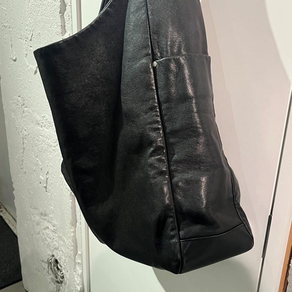 大容量入り、身体に沿う柔らかいレザーバッグです。