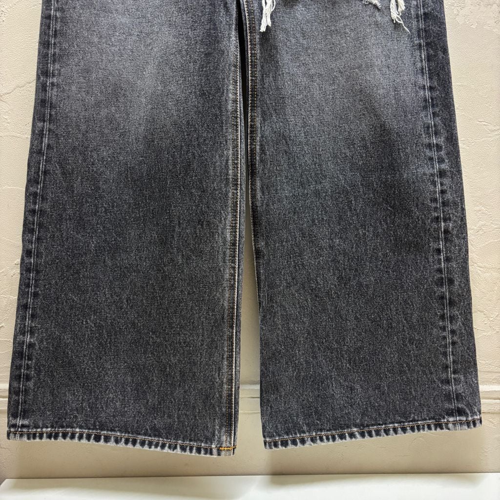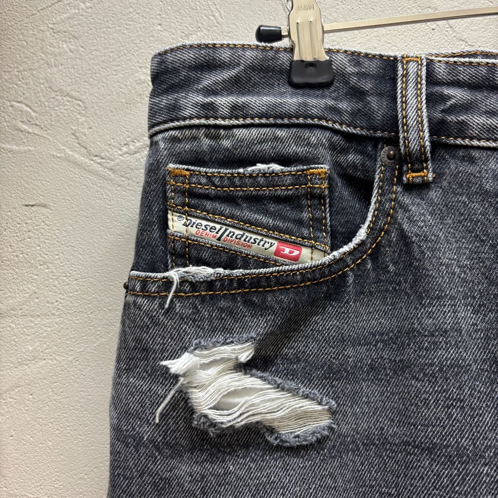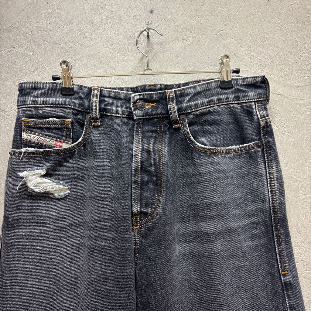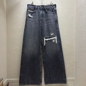ダメージ加工が特徴的な当ブランドらしいデザインのワイドストレートデニムです。