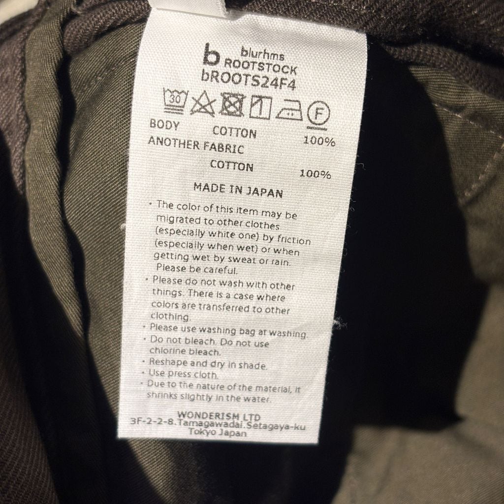 blurhms ROOTSTOCK ブラームスルーツストック Cotton Serge 47 Pants コットンパンツ bROOTS24F4 カーキ size:1【代官山B03】 | ブランド古着Brooch