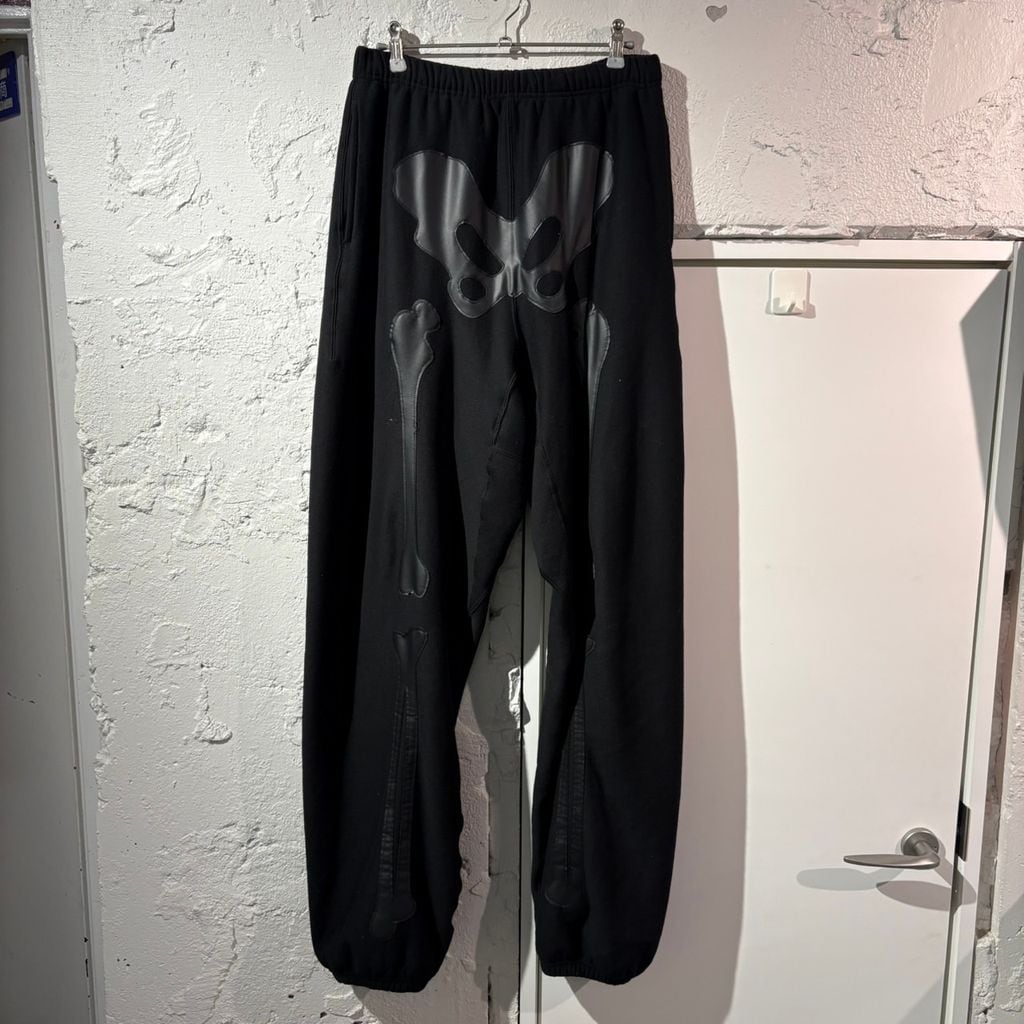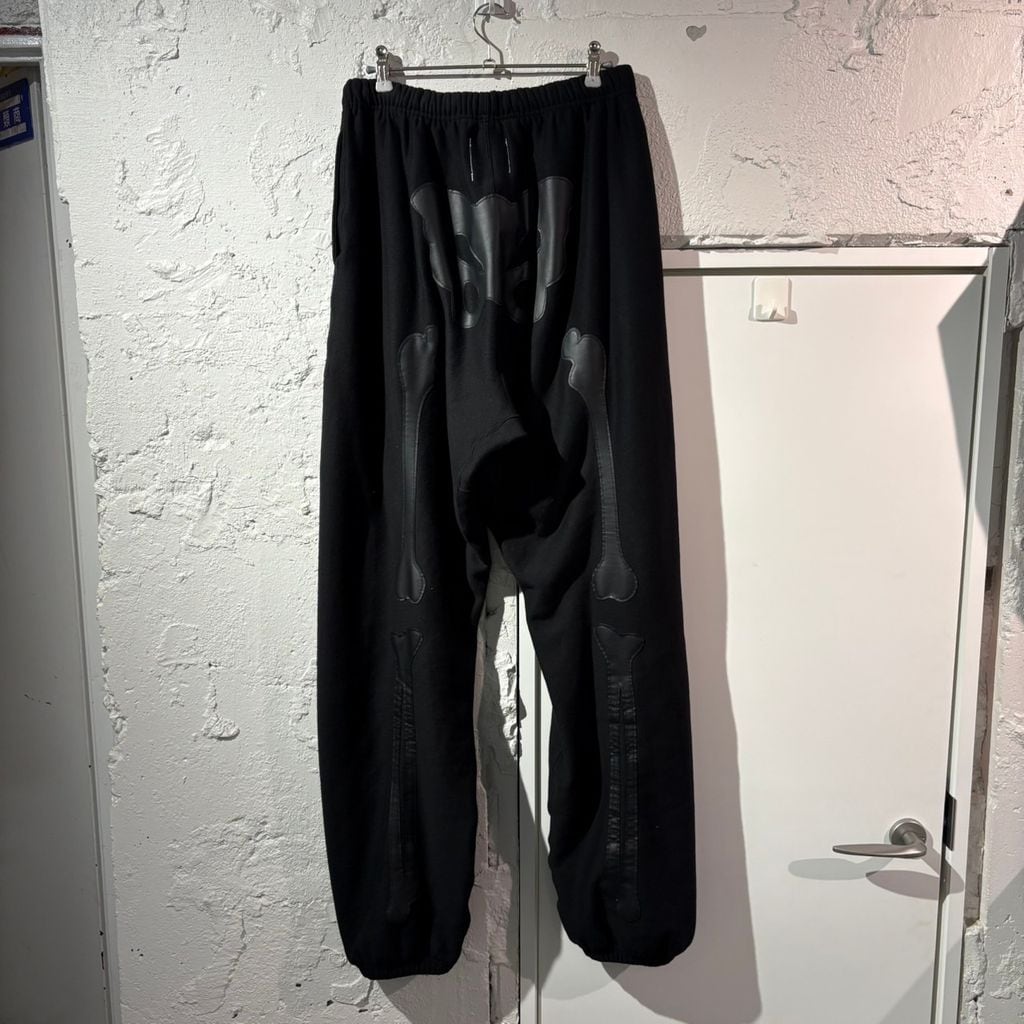 膝や骨盤の部分にボーン(骨)のプリントが施されたスウェットパンツです。