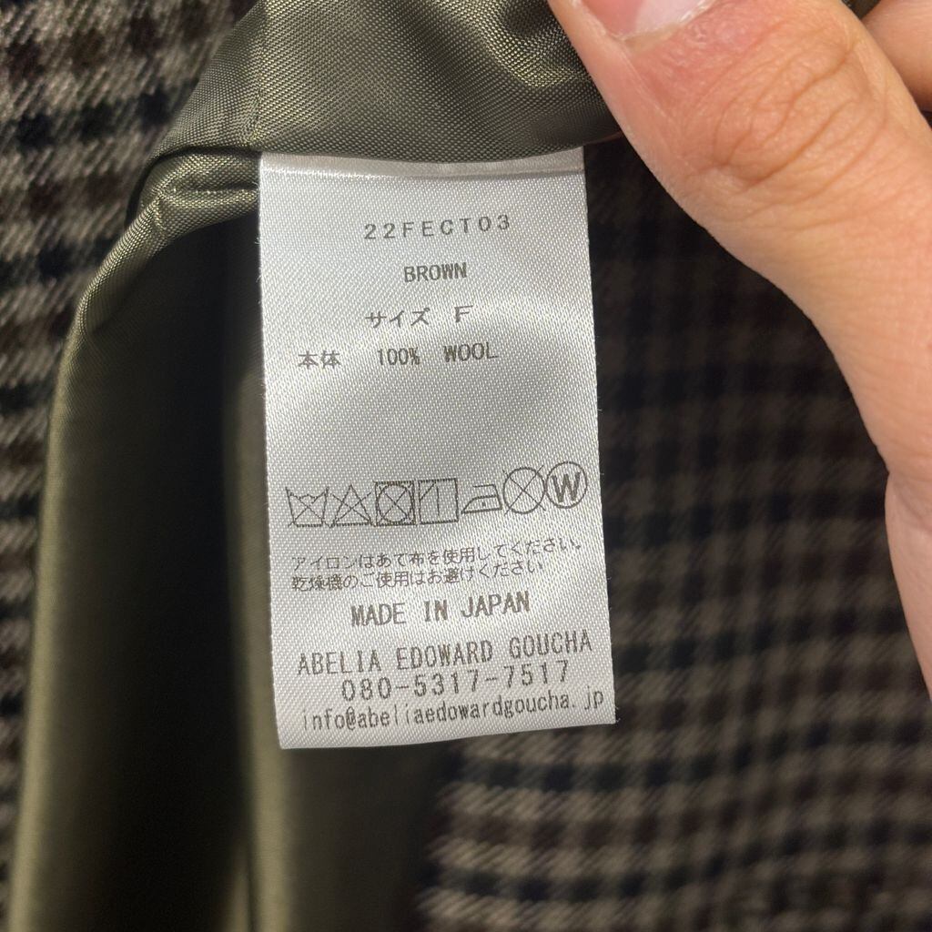 Abelia Edoward Goucha アベリアエドワードゴーチャ 22AW CHECK CHESTER COAT チェスターコート 22FECT03 ブラウン系 size:F【中目黒B03】