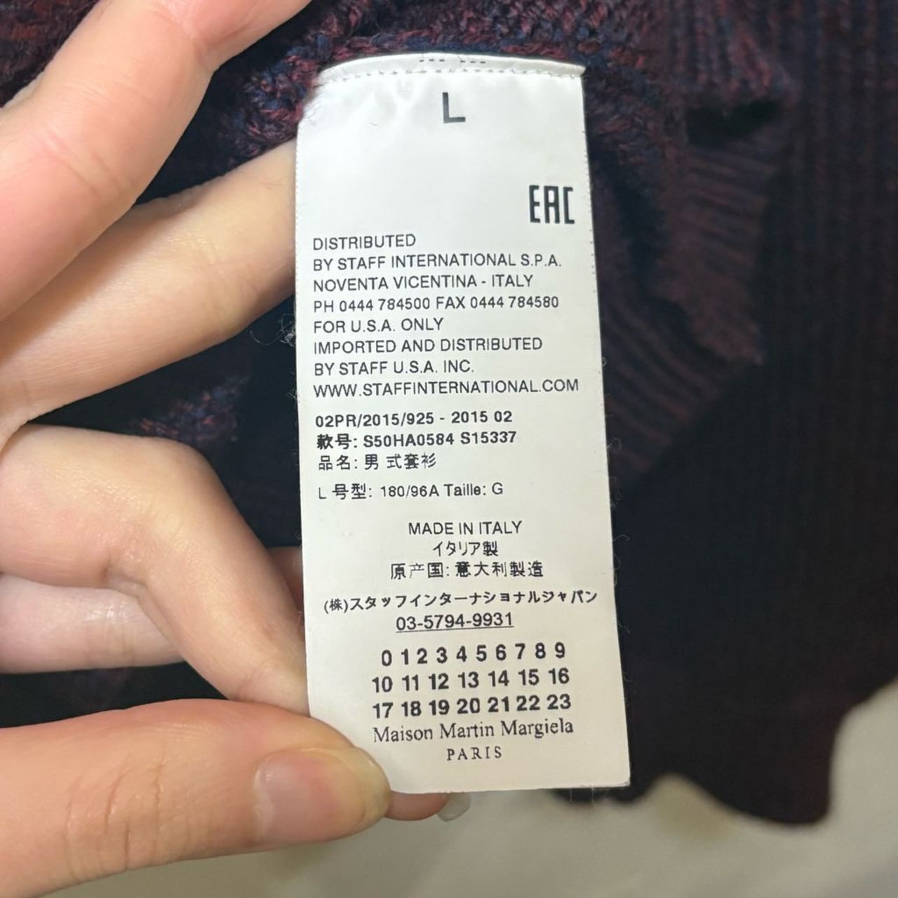 Maison Martin Margiela メゾンマルタンマルジェラ Melange Wool Sweater ニット S50HA0584 ボルドー size:L【代官山B03】