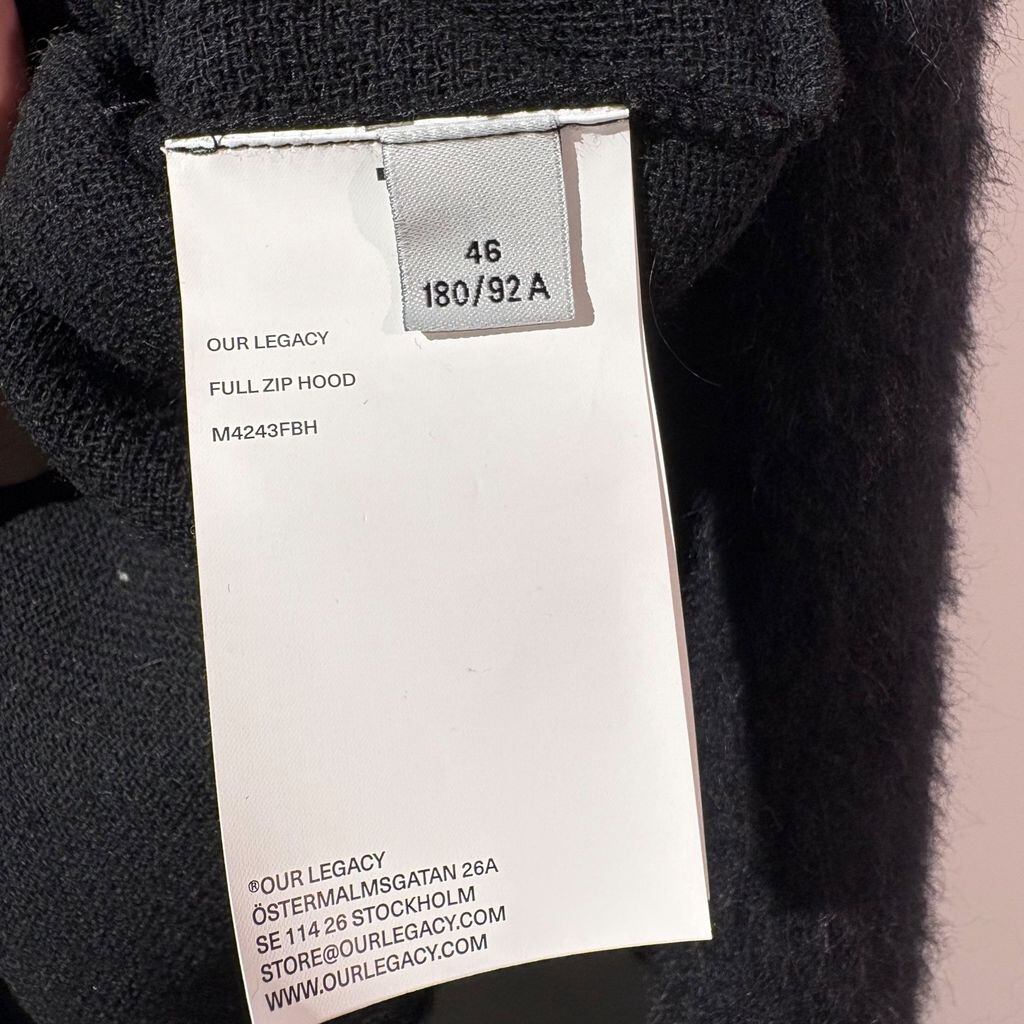 OUR LEGACY アワーレガシー FULL ZIP HOOD パーカー M4243FBH ブラック size:46【表参道B03】