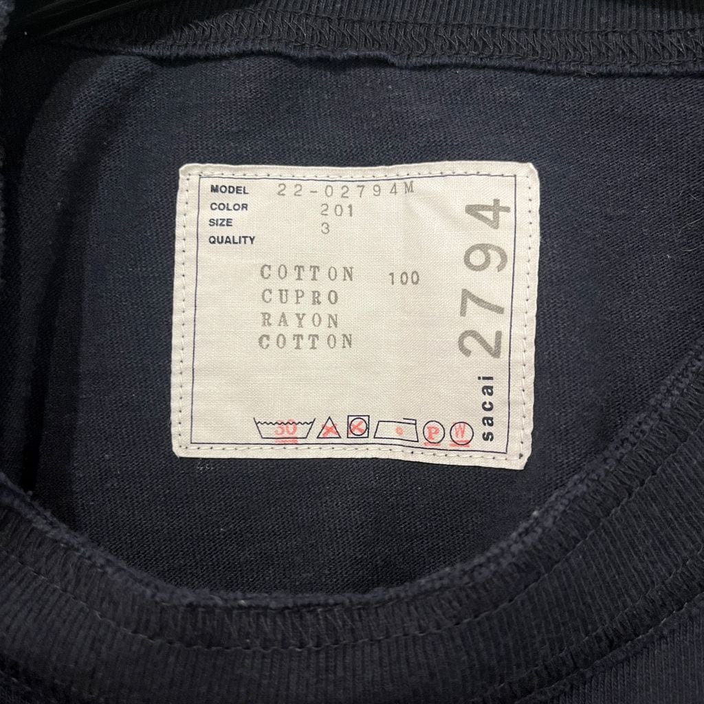 sacai サカイ 22SS Cotton Twill T-Shirt コットンツイルTシャツ 22-02794M ブラック size:3【表参道B03】