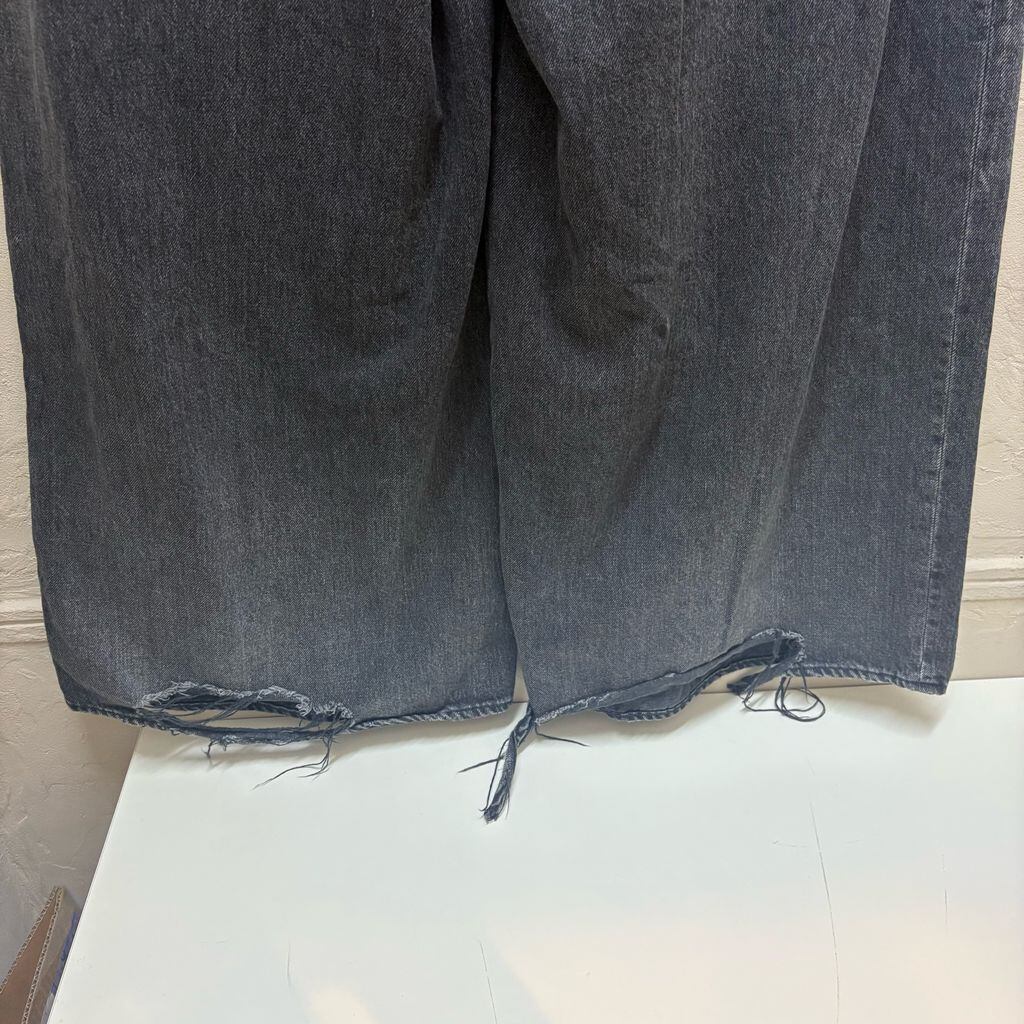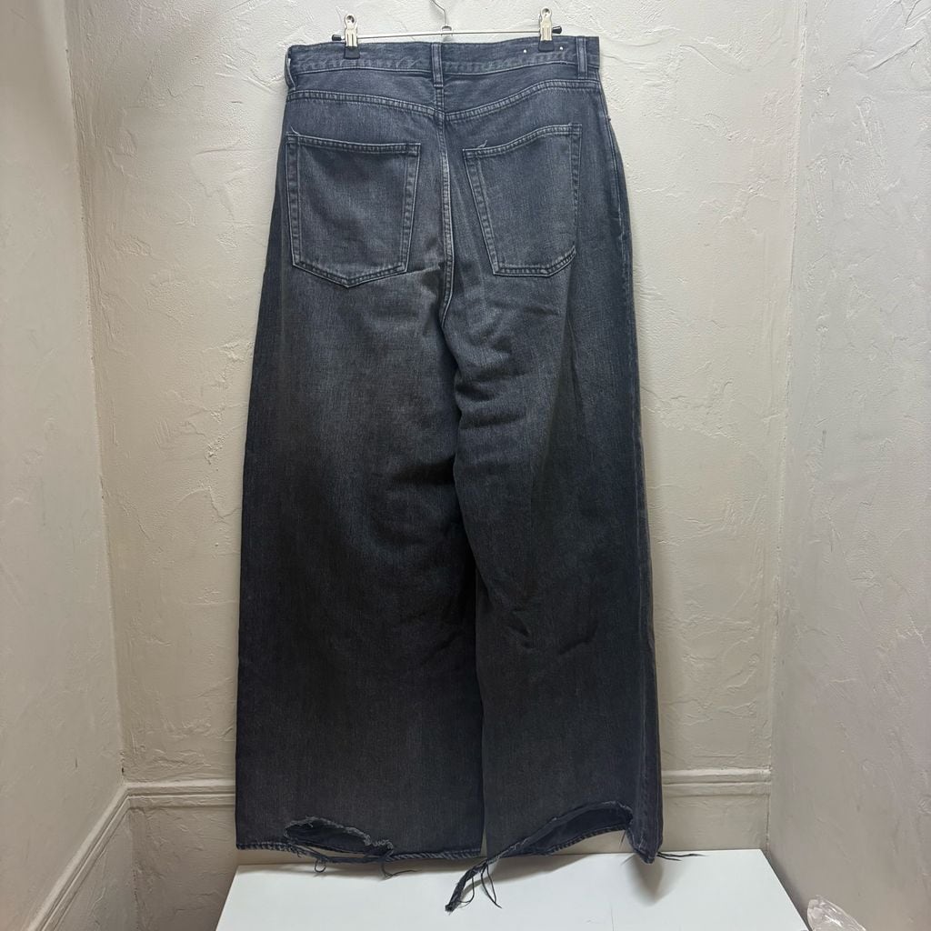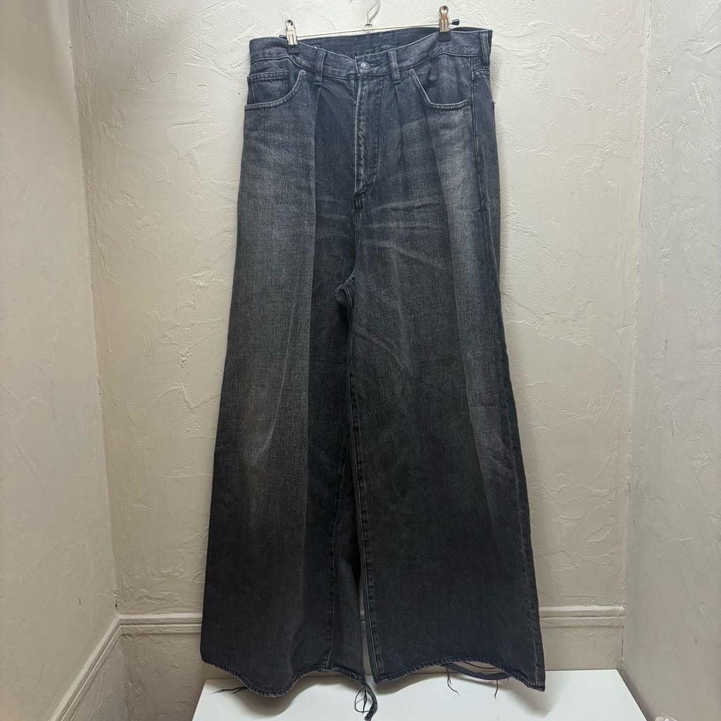 柔らかくドレープ感のある甘織りデニムをヴィンテージライクなUSED加工を施して仕上げたフロントタック入りジャイアントバギーシルエットジーンズ。