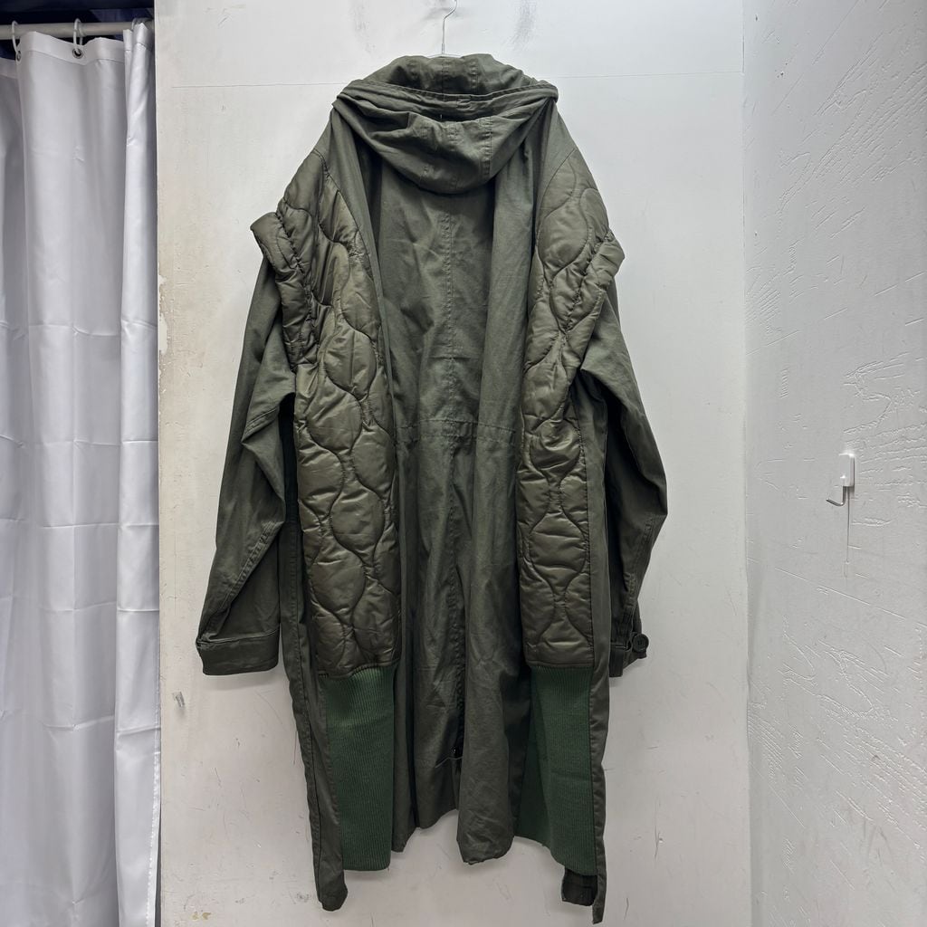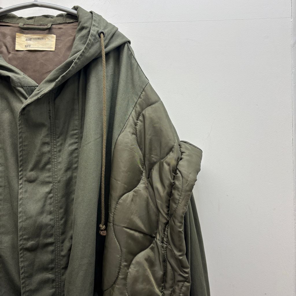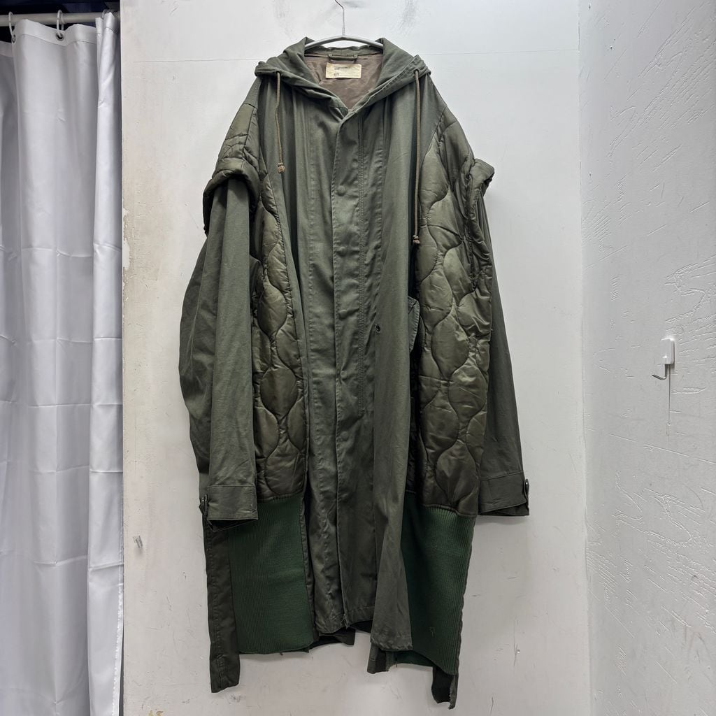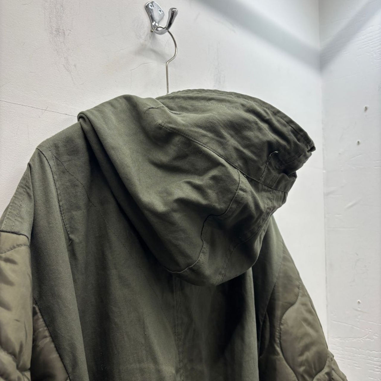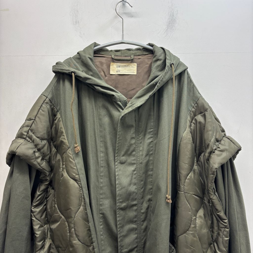 様々な素材の組み合わせが特徴的なミリタリーコートです。