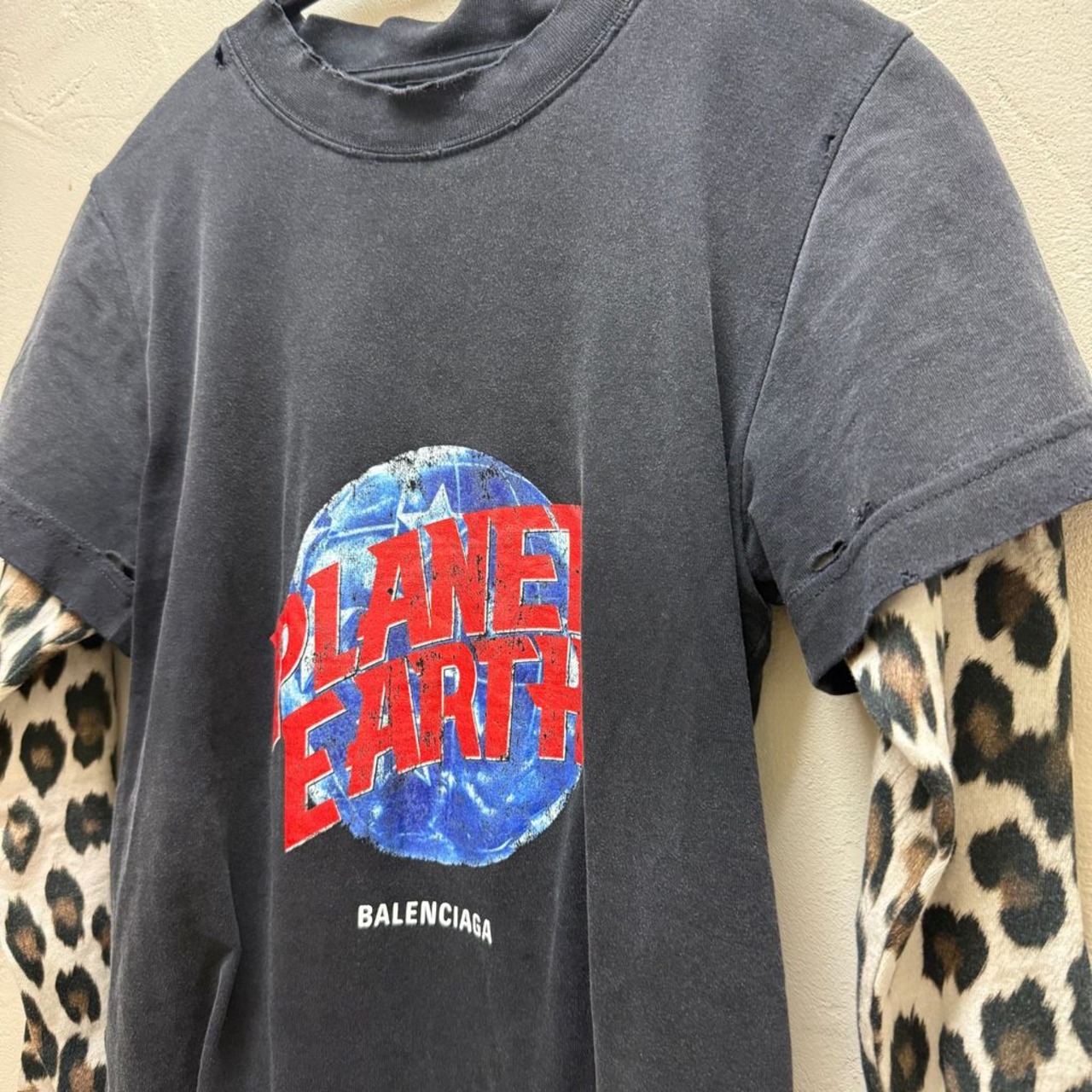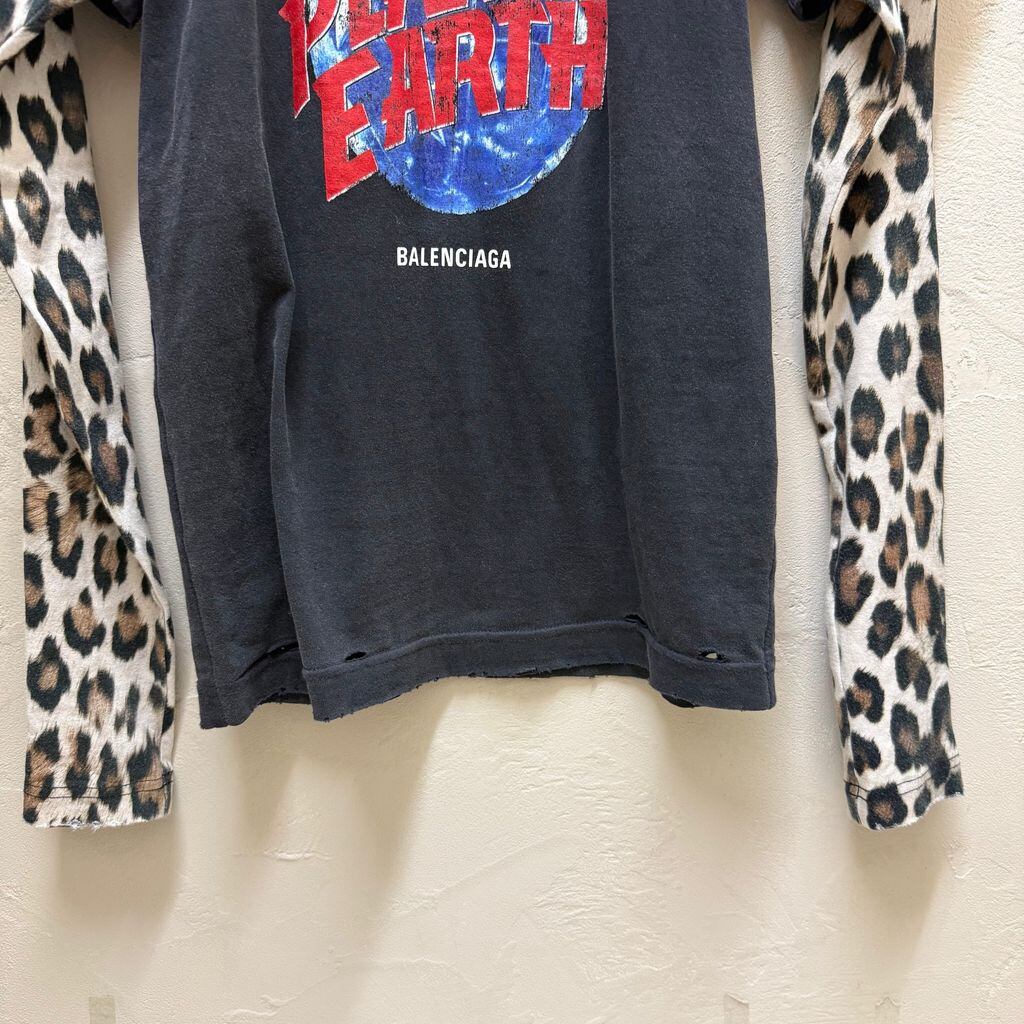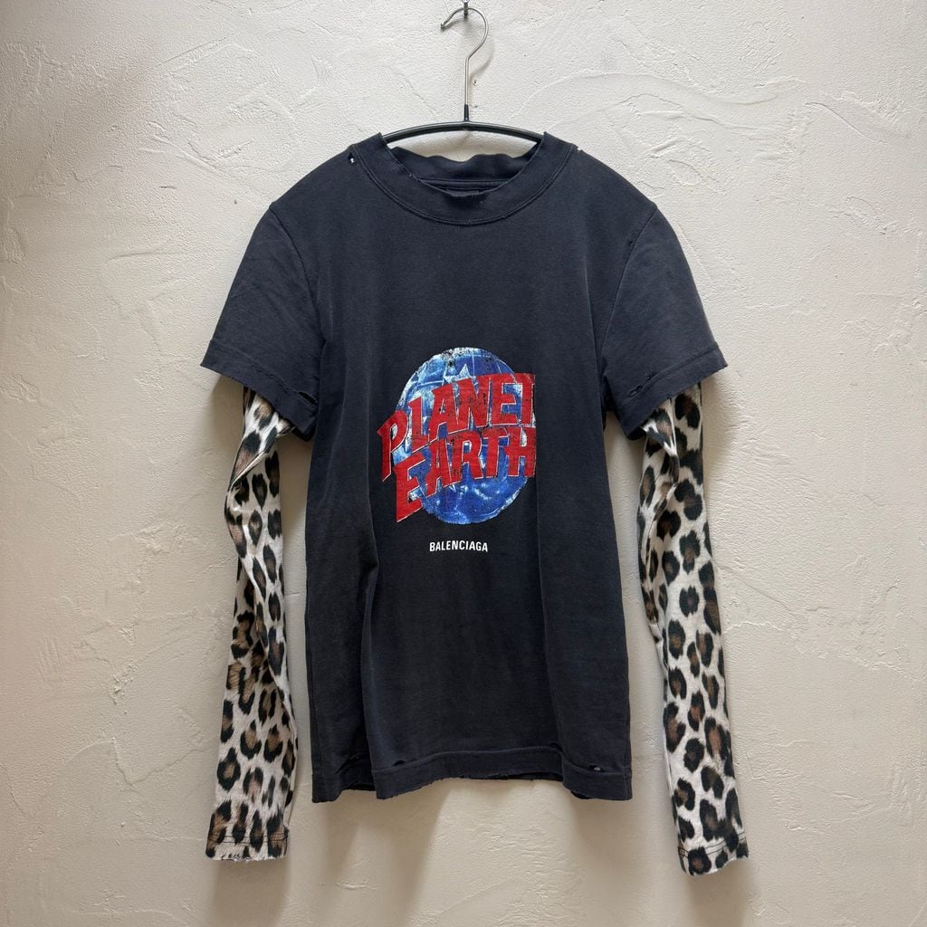 BALENCIAGA バレンシアガ 24SS PLANET EARTH DOUBLE SLEEVE レイヤードT 809262 TRVC8 1041 ブラック系 size:XS 【代官山B03】