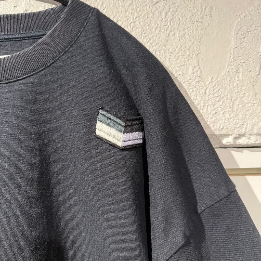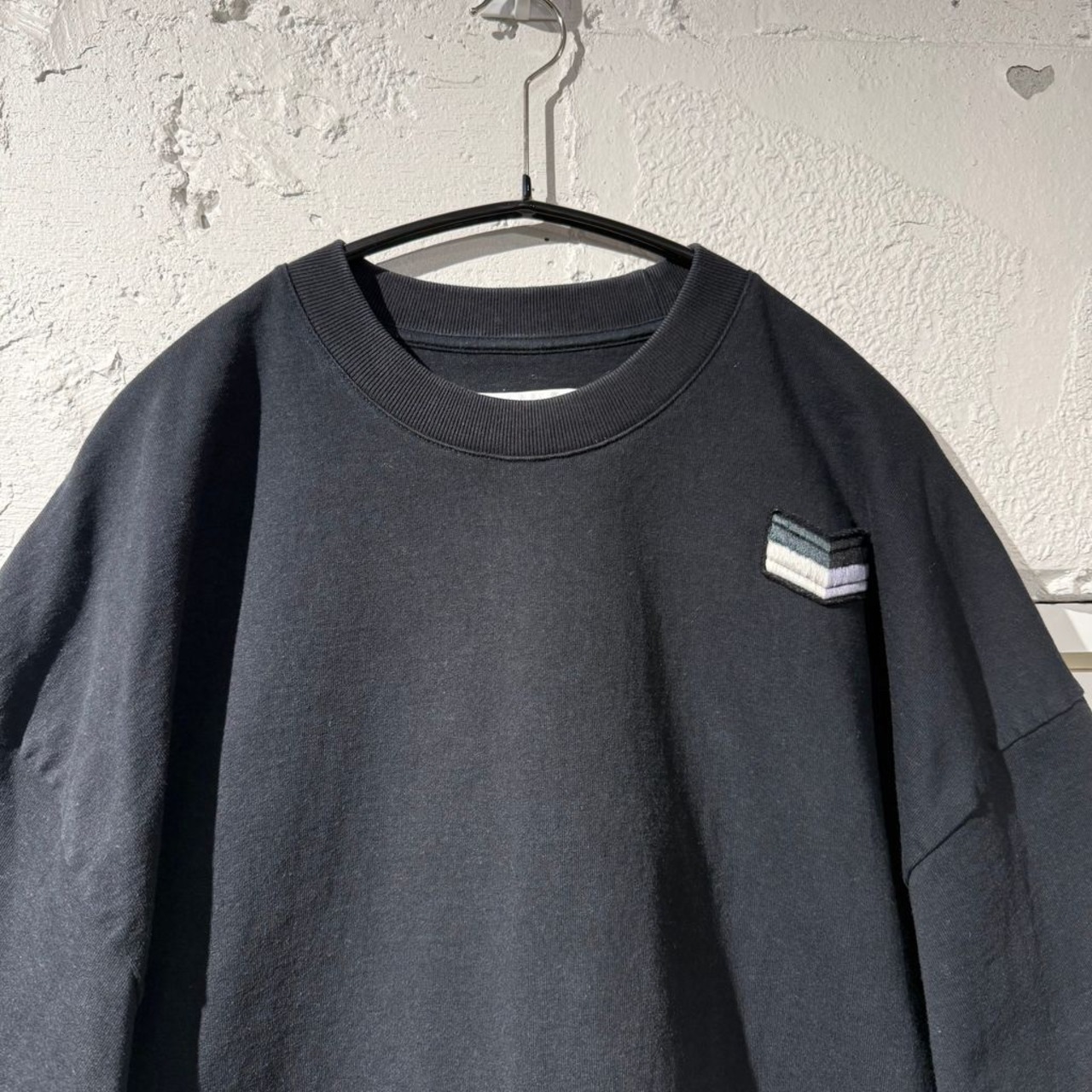 左胸あたりの刺繍が特徴的なアイテムです。