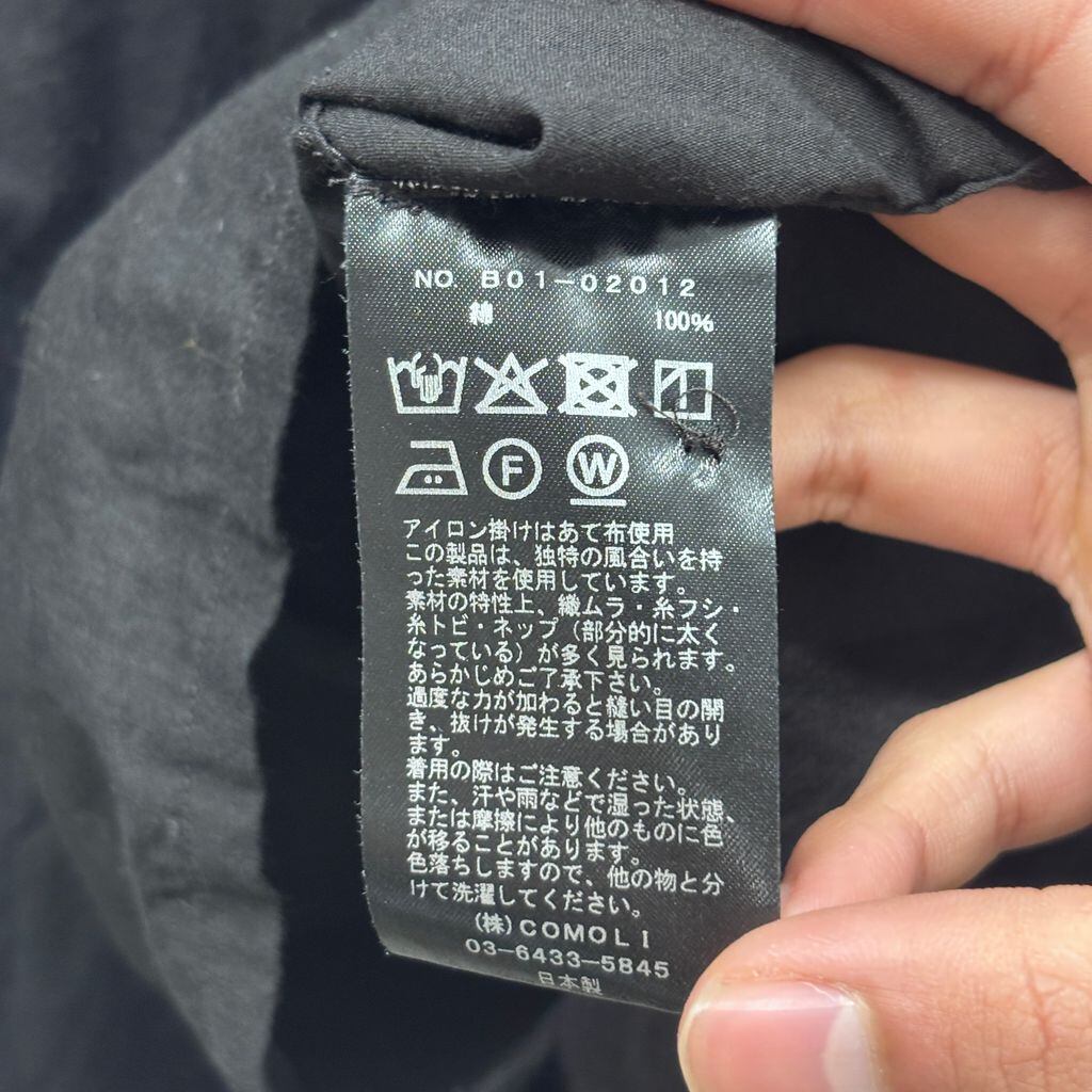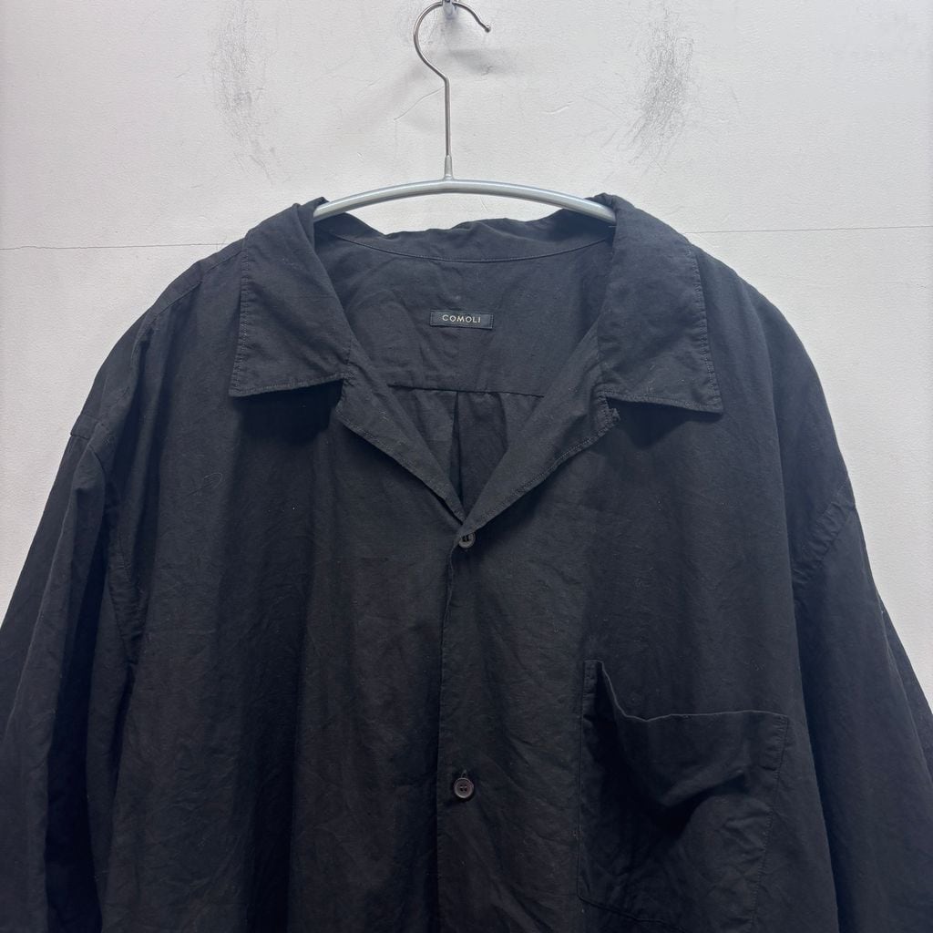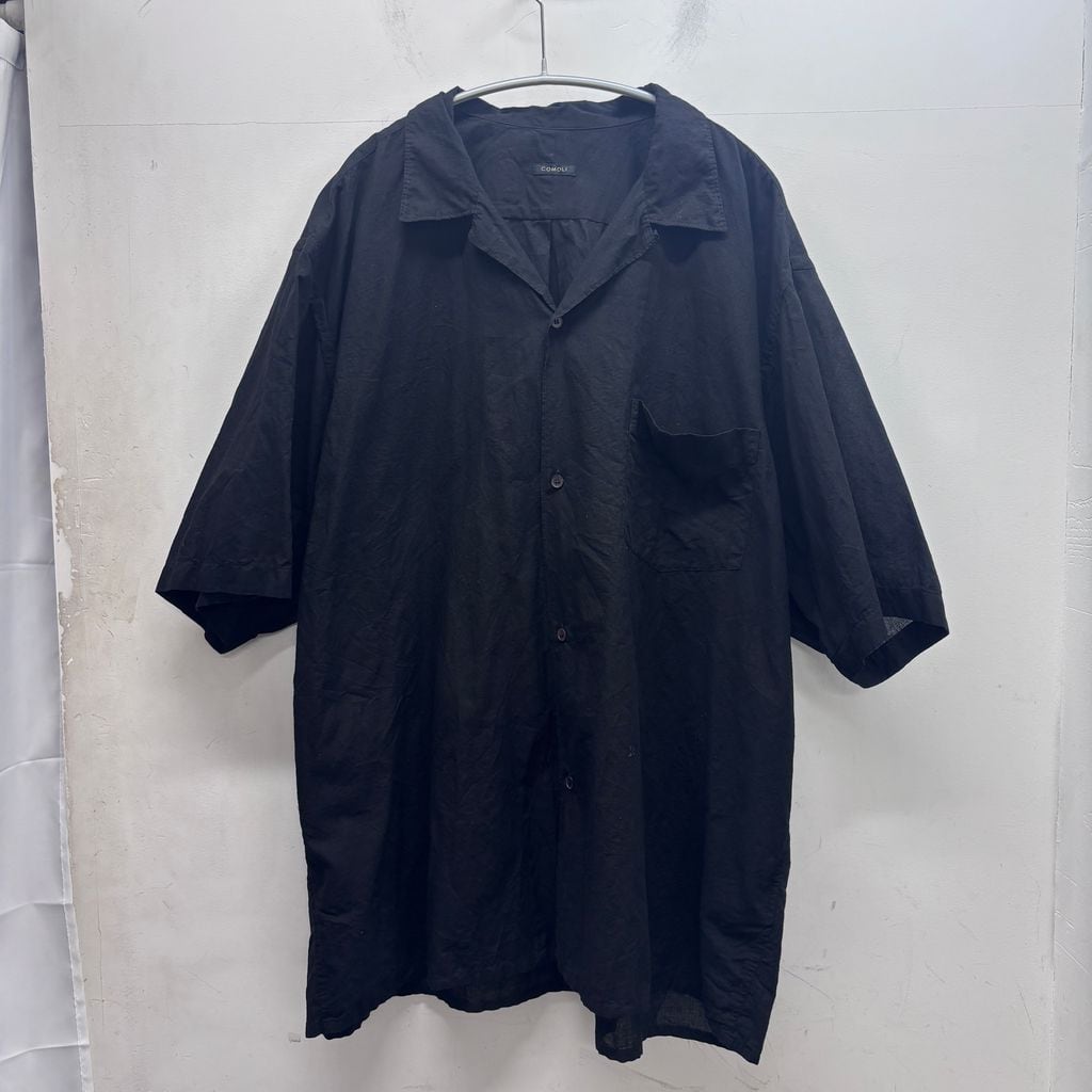 COMOLI コモリ 25SS KHADI COTTON OPEN COLLAR SHIRT 半袖オープンカラーシャツ B01-02012 ブラック size:4【中目黒B03】