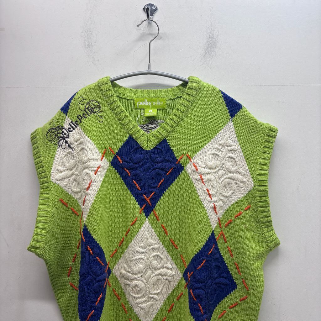 Pelle Pelle ペレペレ Argyle Knit Vest ニットベスト 59AR1 マルチカラー size:L【中目黒B03】