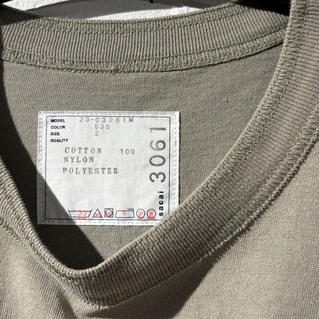 sacai サカイ 23SS Cotton Jersey T-Shirt 半袖Tシャツ 23-03061M カーキ size:2 【表参道B04】