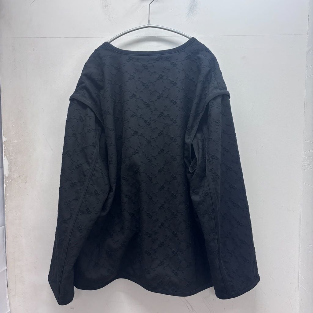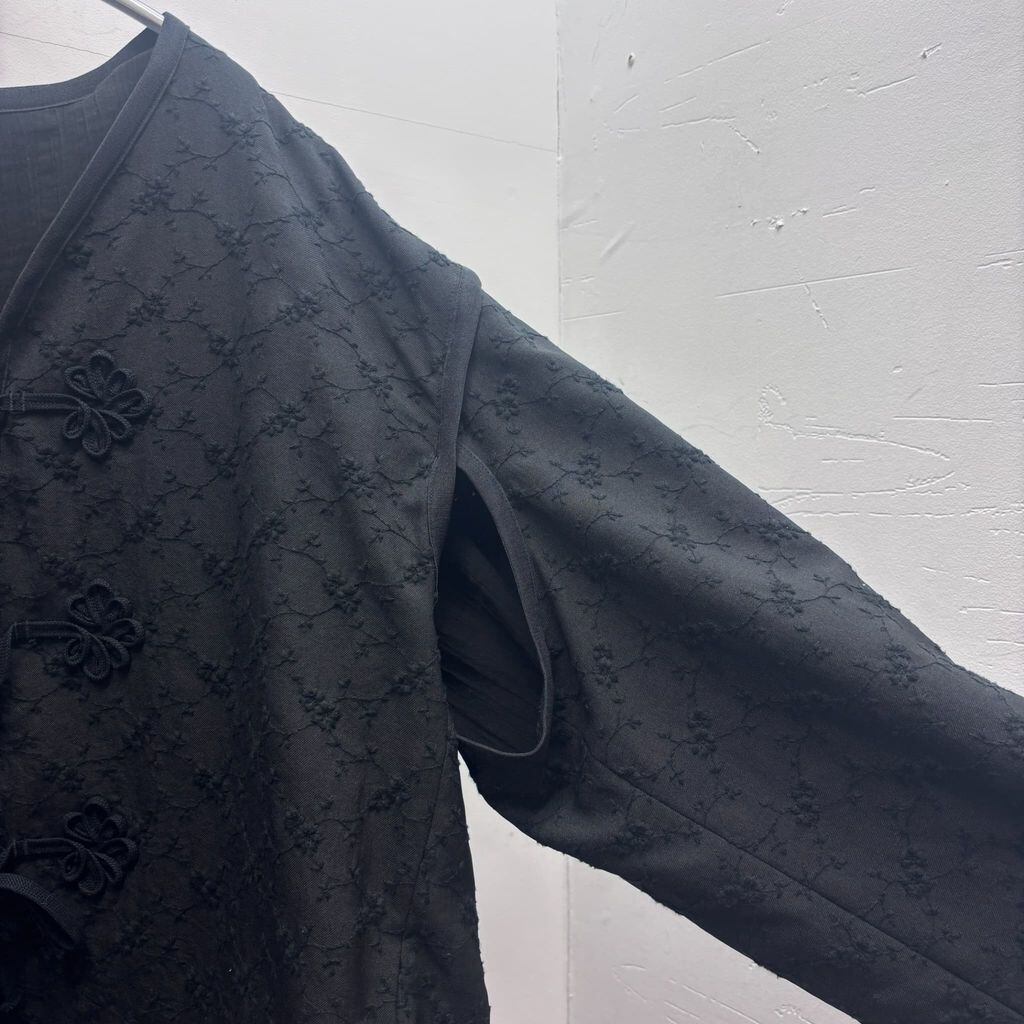 ジャガード生地にチャイナボタンのディティールが特徴的で、当ブランドらしい存在感のあるジャケットです。