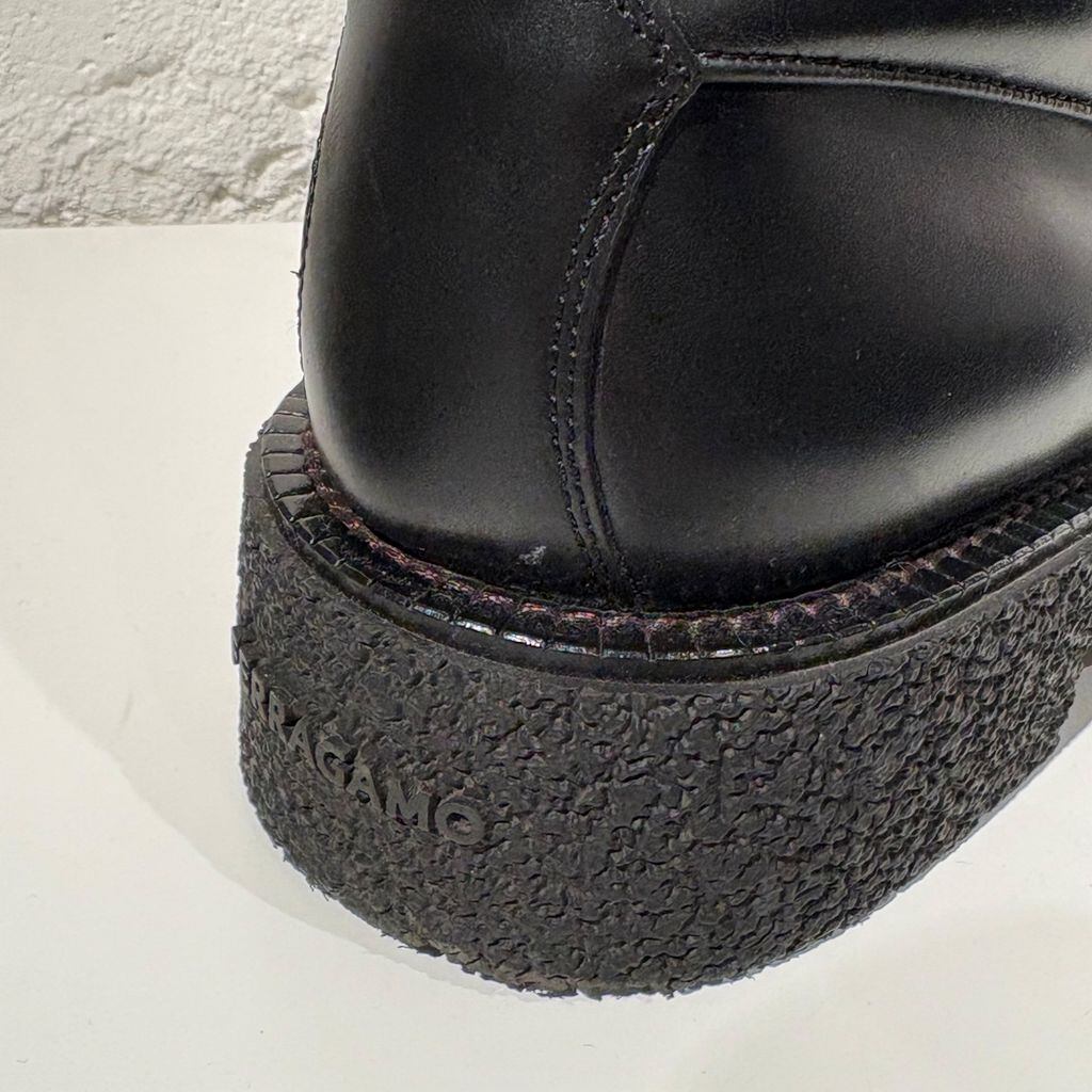 FERRAGAMO フェラガモ COLORADO Leather Short Boots チャンキーブーツ ブラック size:8 【表参道B04】