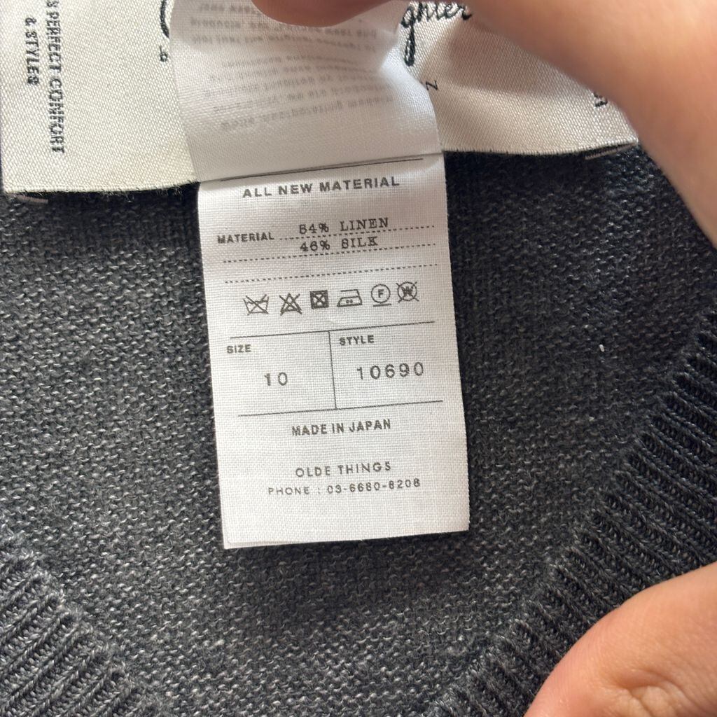 Olde H & Daughter オールドエイチアンドドーター LINEN/SILK PLAIN STITCH V-NECK Vネックニット 10690 グレー size:10【中目黒B04】