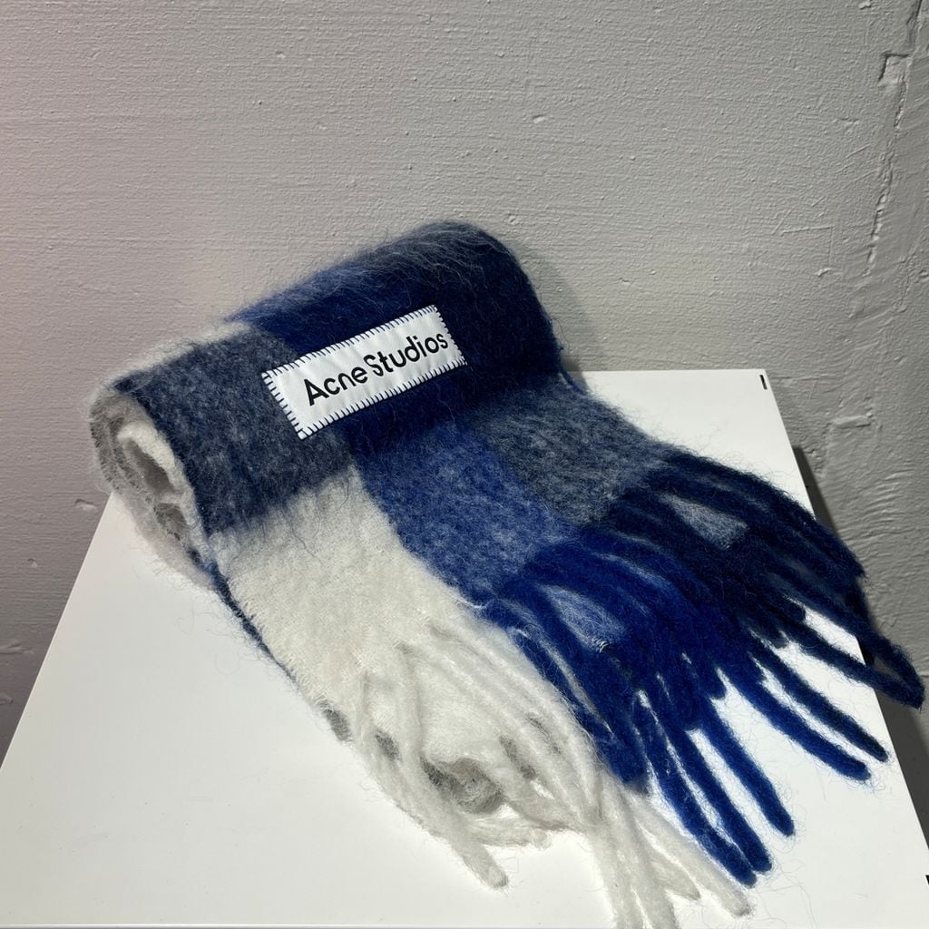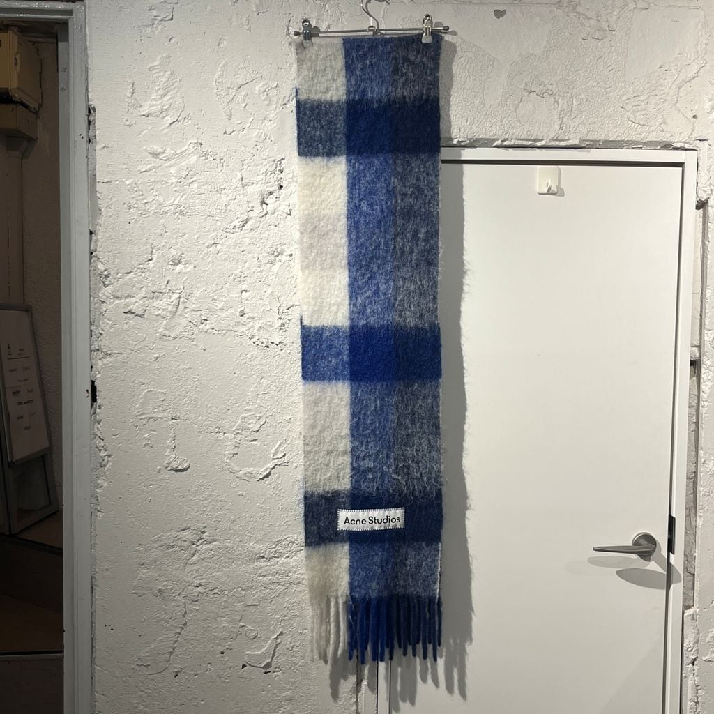 Acne Studios アクネストュディオズ mohair check scarf マフラー ブルー系 size:250×28 【表参道B04】
