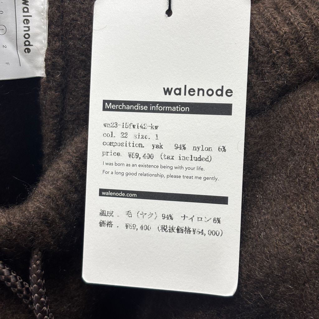 walenode ウェルノード Innocent YAK pants パンツ wn23-15fw142-kw ブラウン size:1【中目黒B04】