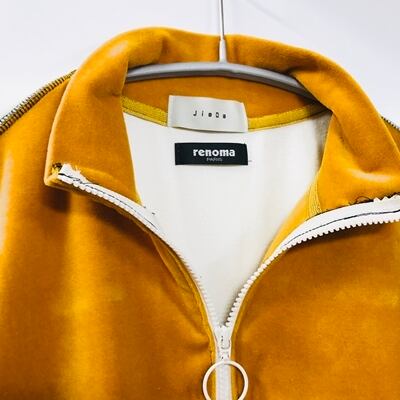 フロントのrenomoの刺繍が施されたコラボレーションアイテム。
