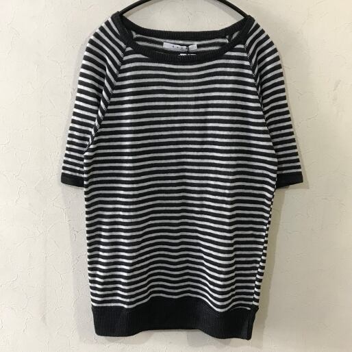 KURO クロ リネン混 半袖ニット ボーダー ホワイト系 0 【代官山k06】