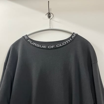 衿周りにNEON SIGNのブランドコンセプトである「THE PURSUE OF CLOTH ARTS」のプリントをあしらったロングスリーブTシャツ。 ベーシックなデザインながらも雰囲気のあるパターンと素材使いで落とし込んだデザインになります。 一枚で着ても、シャツやアウターのインナーに重ね着した際に襟元にアクセントが入ります。