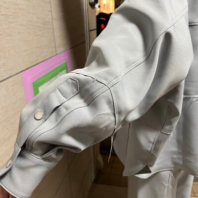 軽やかなポリエステル素材に大胆なカットオフのデザインを加えたJieDaらいいアイテム。 ストリートの要素を持ち合わせながら、上品に見えるように別注で制作を依頼。 トレンドの、オーバーサイズのシャツブルゾンが今っぽくスタイリングしてくれます。