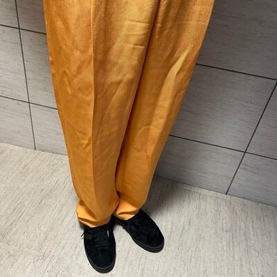 微細な光沢感のある生地のタックパンツです。 センタープレスのシャープさがエレガントな印象を与えてくれます。 メンズ使用可能