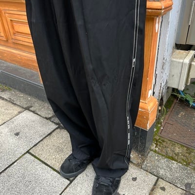 タキシードや燕尾服といった格式が必要とされるブラックフォーマルの黒を、長年突き詰めてきた兒玉毛織の生地。 シワギャバよりも風合いが軽く、しっとりとした手触り。足を前に蹴り出すたびに生地が揺れ、黒が靡き、黒が深くなる印象です。 テーラードジャケットの外しとしてこうしたワイドシルエットのパンツを合わせると、よりヨウジらしいスタイルになります。