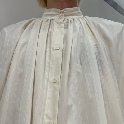 背中のギャザー、その他、プリーツ、タックが全体的に散りばめられた当ブランドらしいアイテムです