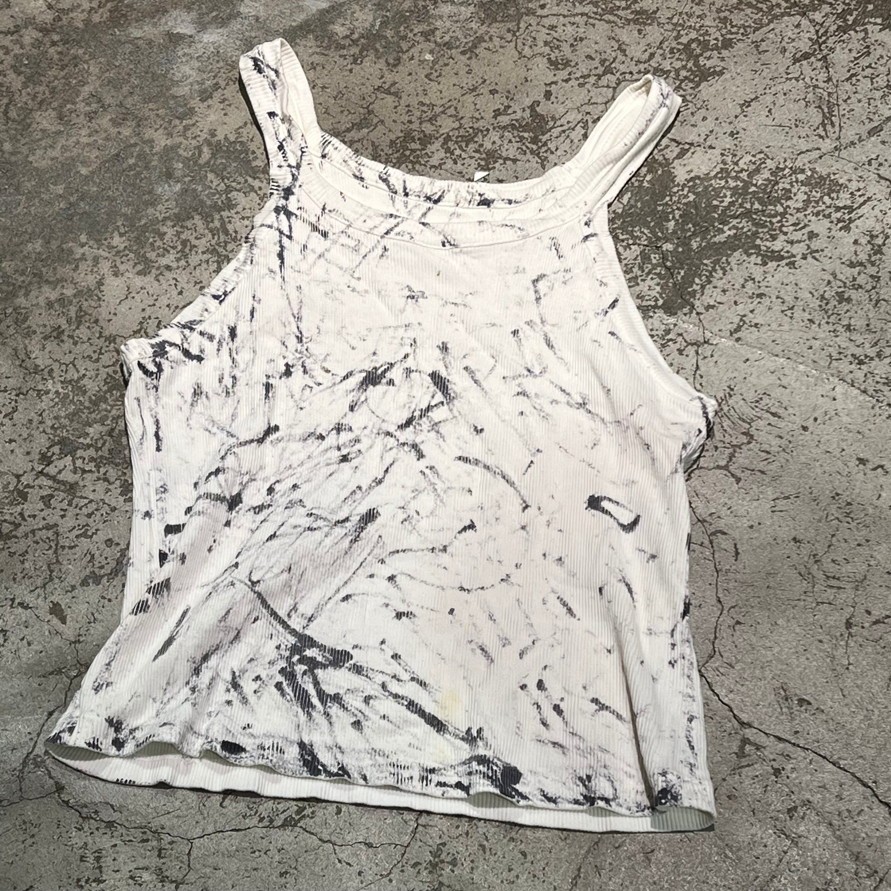 ペイント加工が特徴的な、リブの入ったタンクトップです。