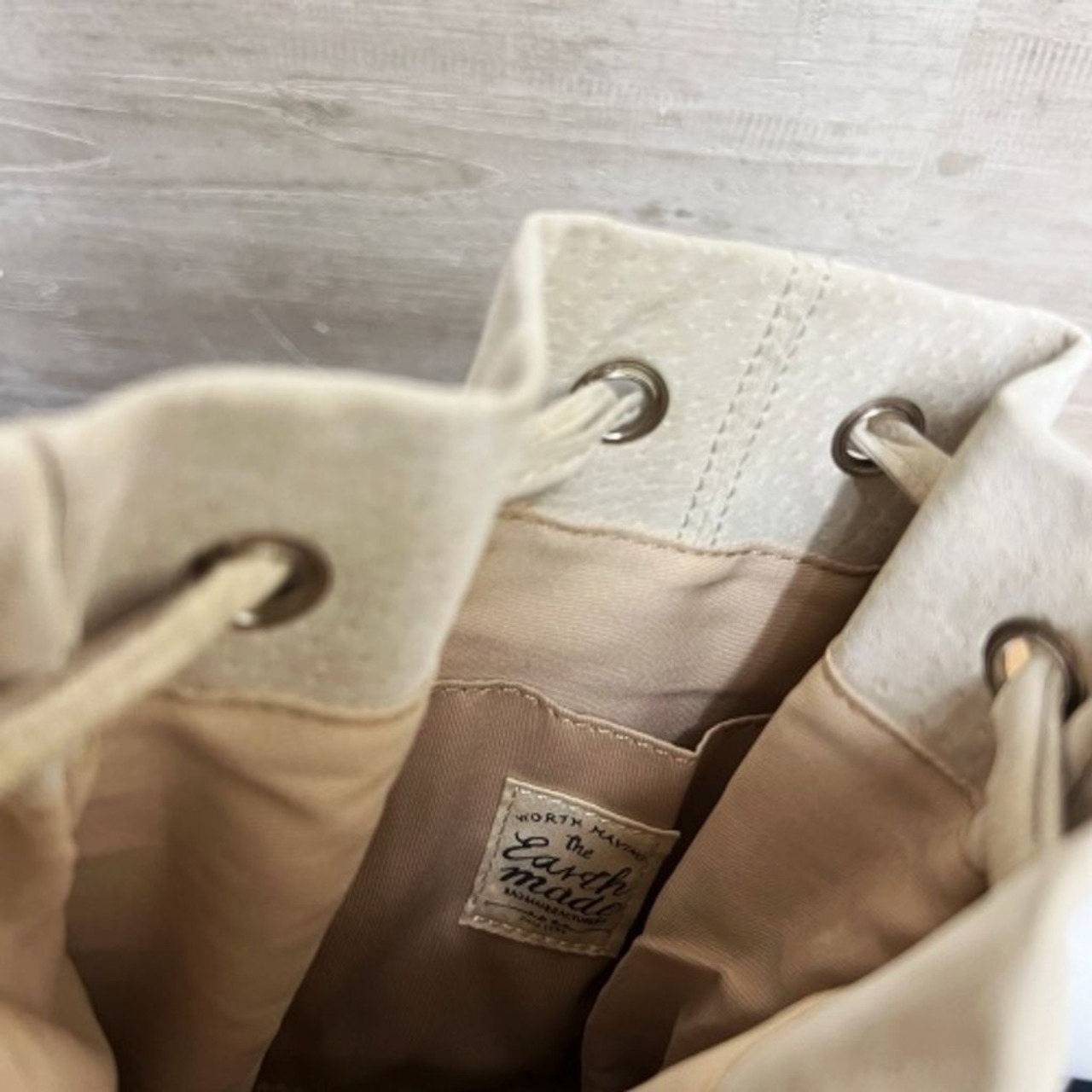WORTH HAVING EARTH MADE アースメイド 巾着バッグ ベージュ系 【中目黒b02】
